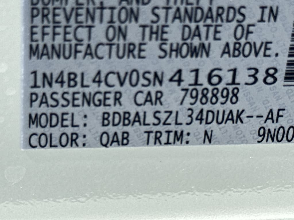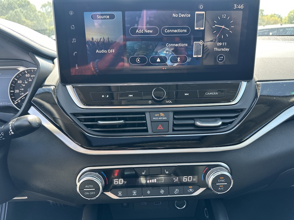 CVT with Xtronic, 4-Wheel Disc Brakes, 6 Speakers, ABS brakes, Air Conditioning, Alloy wheels, AM/FM radio: SiriusXM, Auto High-beam Headlights, Blind Spot Warning, Brake assist, Bumpers: body-color, Delay-off headlights, Driver door bin, Driver vanity mirror, Dual front impact airbags, Dual front side impact airbags, Electronic Stability Control, Four wheel independent suspension, Front anti-roll bar, Front Bucket Seats, Front Center Armrest, Front reading lights, Fully automatic headlights, Illuminated entry, Knee airbag, Leather Shift Knob, Low tire pressure warning, NissanConnect featuring Apple CarPlay and Android Auto, Occupant sensing airbag, Outside temperature display, Overhead airbag, Overhead console, Panic alarm, Passenger door bin, Passenger vanity mirror, Power door mirrors, Power driver seat, Power steering, Power windows, Radio data system, Radio: AM/FM Audio System, Rear anti-roll bar, Rear Parking Sensors, Rear reading lights, Rear seat center armrest, Rear side impact airbag, Rear window defroster, Remote keyless entry, Security system, Speed control, Speed-sensing steering, Speed-Sensitive Wipers, Split folding rear seat, Sport Seat Trim, Steering wheel mounted audio controls, Tachometer, Telescoping steering wheel, Tilt steering wheel, Traction control, Trip computer, Unique Sport Seats, Variably intermittent wipers, Wheels: 19" Sport Machined Alloy, CVT with Xtronic. New vehicle price includes all manufacturer and dealer incentives. Must finance with NMAC at standard rates to receive displayed price. Cash price may vary depending on NMAC and Dealer incentives. Not everyone qualifies for NMAC financing. Price in lieu of any special APR incentives cannot be combined with other offers unless specifically disclosed by the dealer. Prices do not include tax, tag, title or Georgia Lemon Law fees. Displayed prices include dealer doc fee and electronic filing fee. All pre-owned vehicles may also be subject to additional reconditioning and certification fees. Pearl White 2025 Nissan Altima 2.5 SR FWD 2.5L 4-Cylinder DOHC 16V CVT with Xtronic