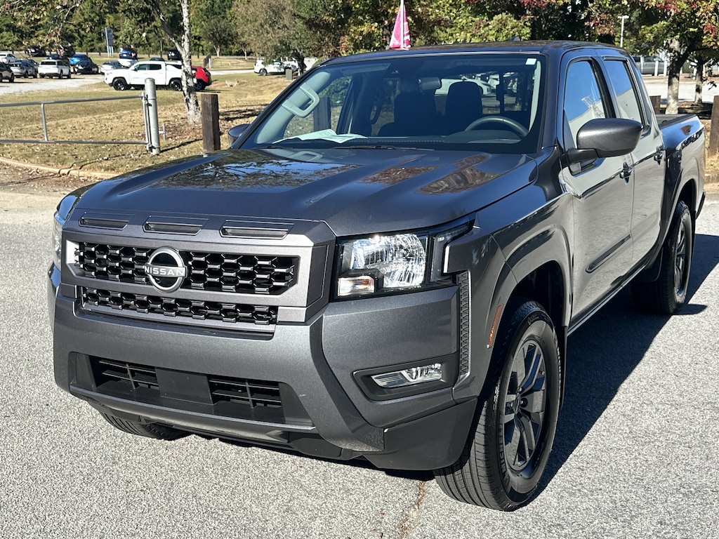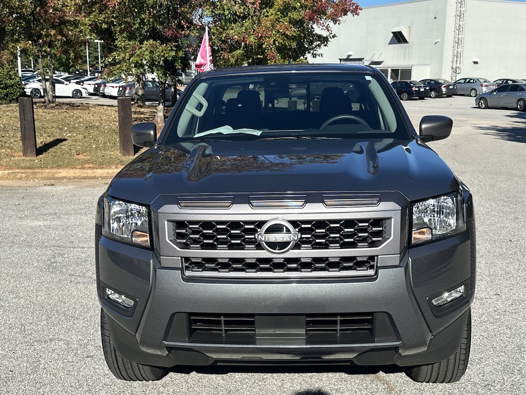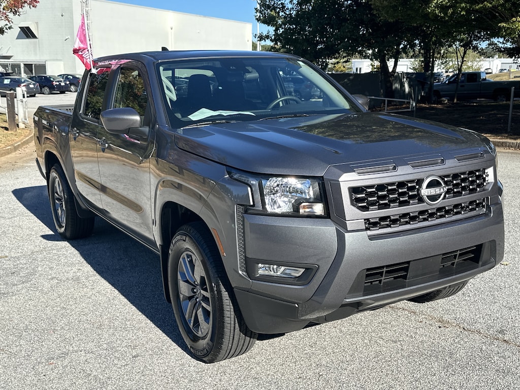 17" Alloy Wheels, 3.692 Axle Ratio, 4-Wheel Disc Brakes, 6 Speakers, ABS brakes, Air Conditioning, Alloy wheels, AM/FM radio: SiriusXM, Anti-whiplash front head restraints, Auto High-beam Headlights, Blind Spot Warning, Brake assist, Bumpers: body-color, Delay-off headlights, Driver door bin, Driver vanity mirror, Dual front impact airbags, Dual front side impact airbags, Electronic Stability Control, Emergency communication system, Front anti-roll bar, Front Bucket Seats, Front Center Armrest, Front reading lights, Front wheel independent suspension, Fully automatic headlights, Illuminated entry, Knee airbag, Low tire pressure warning, Occupant sensing airbag, Overhead airbag, Overhead console, Panic alarm, Passenger door bin, Passenger vanity mirror, Power door mirrors, Power driver seat, Power steering, Power windows, Premium Cloth Seat Trim, Radio data system, Radio: SXM/AM/FM/AUX/USB Audio System, Rear anti-roll bar, Rear seat center armrest, Rear side impact airbag, Rear step bumper, Remote keyless entry, Security system, Speed control, Speed-sensing steering, Split folding rear seat, Steering wheel mounted audio controls, Tachometer, Telescoping steering wheel, Tilt steering wheel, Traction control, Trip computer, Variably intermittent wipers, Voltmeter, Wireless Apple CarPlay/Wireless Android Auto. New vehicle price includes all manufacturer and dealer incentives. Must finance with NMAC at standard rates to receive displayed price. Cash price may vary depending on NMAC and Dealer incentives. Not everyone qualifies for NMAC financing. Price in lieu of any special APR incentives cannot be combined with other offers unless specifically disclosed by the dealer. Prices do not include tax, tag, title or Georgia Lemon Law fees. Displayed prices include dealer doc fee and electronic filing fee. All pre-owned vehicles may also be subject to additional reconditioning and certification fees. Gun Metallic 2025 Nissan Frontier SV RWD 3.8L DI DOHC 24V V6 9-Speed Automatic with Overdrive