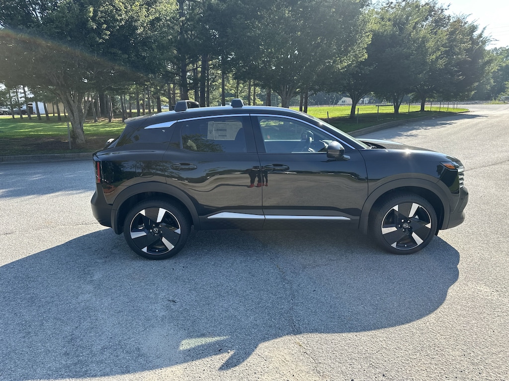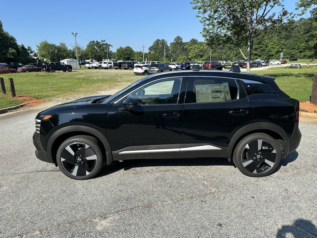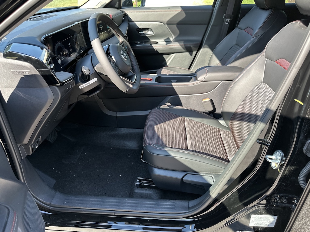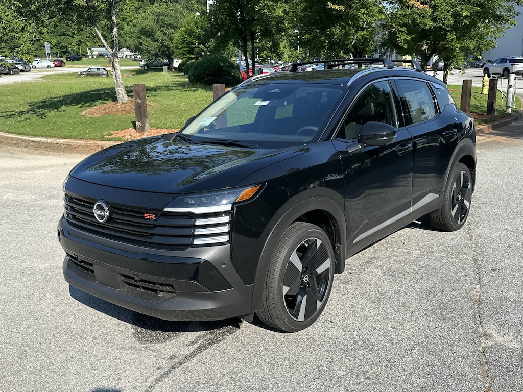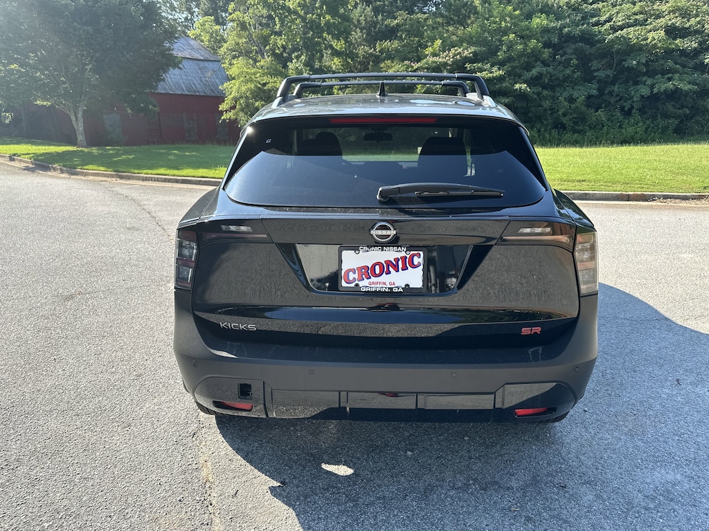 17" Alloy Wheels, 4-Wheel Disc Brakes, 6 Speakers, ABS brakes, Air Conditioning, Alloy wheels, AM/FM radio: Sirius, Auto High-beam Headlights, Automatic temperature control, Brake assist, Bumpers: body-color, Delay-off headlights, Driver door bin, Driver vanity mirror, Dual front impact airbags, Dual front side impact airbags, Electronic Stability Control, Front anti-roll bar, Front Bucket Seats, Front Center Armrest, Front reading lights, Front wheel independent suspension, Fully automatic headlights, Illuminated entry, Knee airbag, Leather Shift Knob, Leather steering wheel, Low tire pressure warning, Occupant sensing airbag, Outside temperature display, Overhead airbag, Overhead console, Panic alarm, Passenger door bin, Passenger vanity mirror, Power door mirrors, Power steering, Power windows, Radio data system, Radio: AM/FM Audio System, Rear anti-roll bar, Rear reading lights, Rear seat center armrest, Rear side impact airbag, Rear window defroster, Rear window wiper, Remote keyless entry, Security system, Speed control, Speed-sensing steering, Split folding rear seat, Spoiler, Sport steering wheel, Steering wheel mounted audio controls, Tachometer, Telescoping steering wheel, Tilt steering wheel, Traction control, Trip computer, Turn signal indicator mirrors, Variably intermittent wipers, Wireless Apple CarPlay/Wireless Android Auto. New vehicle price includes all manufacturer and dealer incentives. Must finance with NMAC at standard rates to receive displayed price. Cash price may vary depending on NMAC and Dealer incentives. Not everyone qualifies for NMAC financing. Price in lieu of any special APR incentives cannot be combined with other offers unless specifically disclosed by the dealer. Prices do not include tax, tag, title or Georgia Lemon Law fees. Displayed prices include dealer doc fee and electronic filing fee. All pre-owned vehicles may also be subject to additional reconditioning and certification fees. Super Black 2025 Nissan Kicks SR FWD 2.0L DOHC CVT with Xtronic