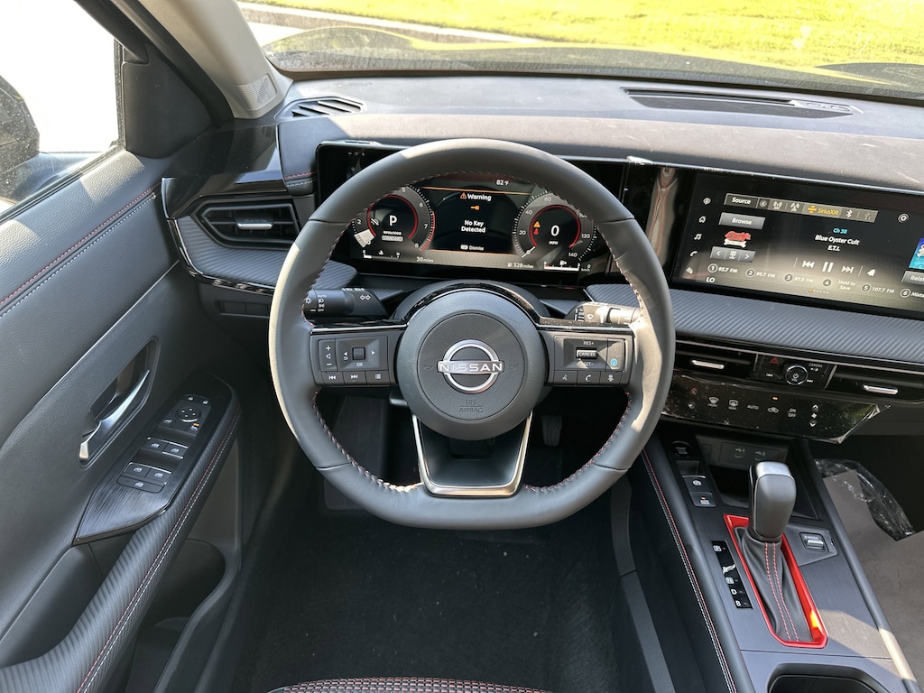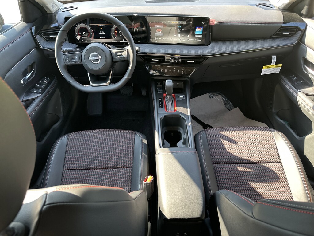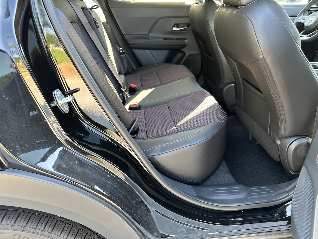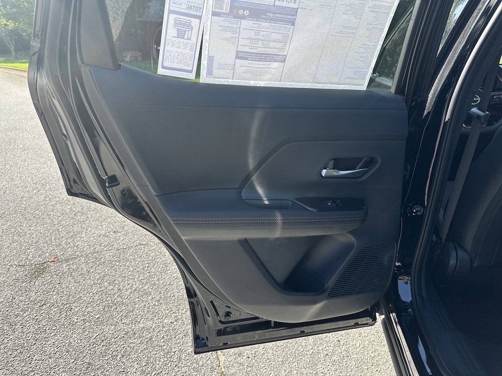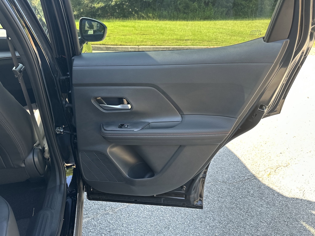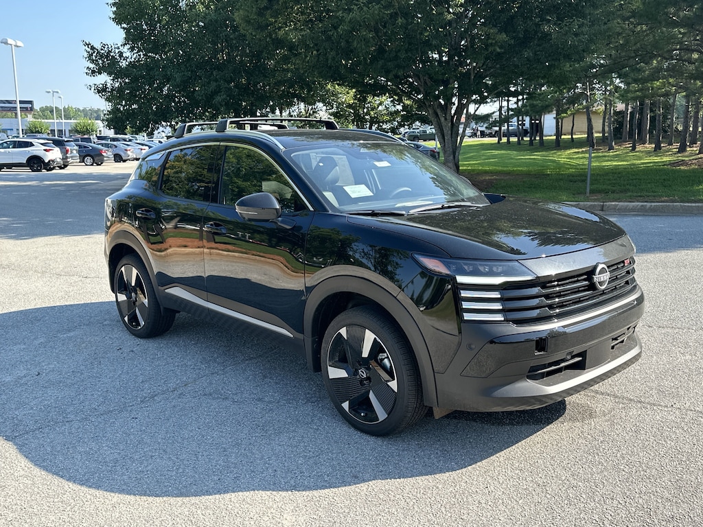 17" Alloy Wheels, 4-Wheel Disc Brakes, 6 Speakers, ABS brakes, Air Conditioning, Alloy wheels, AM/FM radio: Sirius, Auto High-beam Headlights, Automatic temperature control, Brake assist, Bumpers: body-color, Delay-off headlights, Driver door bin, Driver vanity mirror, Dual front impact airbags, Dual front side impact airbags, Electronic Stability Control, Front anti-roll bar, Front Bucket Seats, Front Center Armrest, Front reading lights, Front wheel independent suspension, Fully automatic headlights, Illuminated entry, Knee airbag, Leather Shift Knob, Leather steering wheel, Low tire pressure warning, Occupant sensing airbag, Outside temperature display, Overhead airbag, Overhead console, Panic alarm, Passenger door bin, Passenger vanity mirror, Power door mirrors, Power steering, Power windows, Radio data system, Radio: AM/FM Audio System, Rear anti-roll bar, Rear reading lights, Rear seat center armrest, Rear side impact airbag, Rear window defroster, Rear window wiper, Remote keyless entry, Security system, Speed control, Speed-sensing steering, Split folding rear seat, Spoiler, Sport steering wheel, Steering wheel mounted audio controls, Tachometer, Telescoping steering wheel, Tilt steering wheel, Traction control, Trip computer, Turn signal indicator mirrors, Variably intermittent wipers, Wireless Apple CarPlay/Wireless Android Auto. New vehicle price includes all manufacturer and dealer incentives. Must finance with NMAC at standard rates to receive displayed price. Cash price may vary depending on NMAC and Dealer incentives. Not everyone qualifies for NMAC financing. Price in lieu of any special APR incentives cannot be combined with other offers unless specifically disclosed by the dealer. Prices do not include tax, tag, title or Georgia Lemon Law fees. Displayed prices include dealer doc fee and electronic filing fee. All pre-owned vehicles may also be subject to additional reconditioning and certification fees. Super Black 2025 Nissan Kicks SR FWD 2.0L DOHC CVT with Xtronic