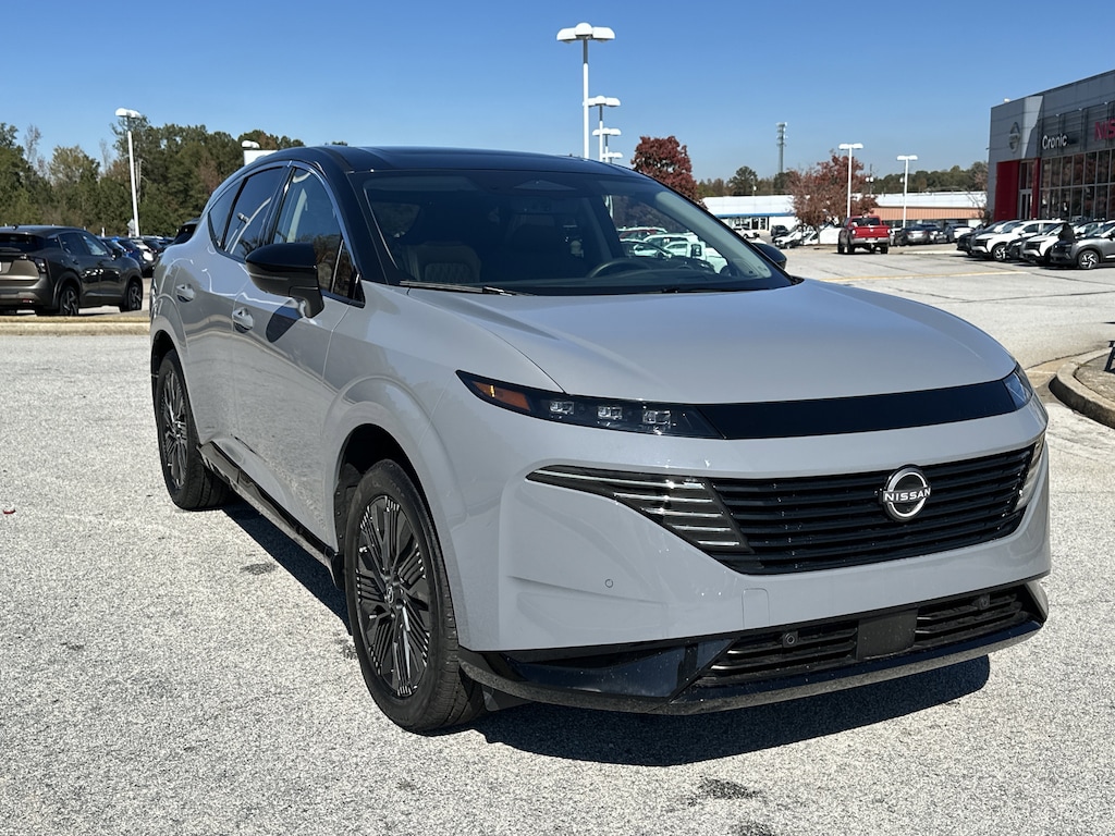 9-Speed Automatic, AWD, 10 Speakers, 2-Tone w/Premium Paint, 21" Alloy Wheels, 3-Position Cargo Area Protector, 4-Wheel Disc Brakes, ABS brakes, Air Conditioning, Alloy wheels, AM/FM radio: SiriusXM w/360L, Auto High-beam Headlights, Auto tilt-away steering wheel, Auto-dimming Rear-View mirror, Automatic temperature control, Brake assist, Bumpers: body-color, Cargo Net, Cargo Package, Carpeted Floor & Cargo Mats, Child-Seat-Sensing Airbag, Compass, Delay-off headlights, Driver door bin, Driver vanity mirror, Dual front impact airbags, Dual front side impact airbags, Electronic Stability Control, Emergency communication system: NissanConnect Services, First Aid Kit, Four wheel independent suspension, Front anti-roll bar, Front Bucket Seats, Front Center Armrest, Front dual zone A/C, Front reading lights, Fully automatic headlights, Garage door transmitter: HomeLink, Heads-Up Display, Heated & Ventilated Front Bucket Seats w/Massage, Heated door mirrors, Heated front seats, Heated rear seats, Heated steering wheel, Illuminated entry, Knee airbag, Low tire pressure warning, Memory seat, Navigation system: NissanConnect with Navigation and Services, Occupant sensing airbag, Outside temperature display, Overhead airbag, Overhead console, Painted Splash Guards, Panic alarm, Passenger door bin, Passenger vanity mirror, Power door mirrors, Power driver seat, Power Liftgate, Power moonroof: Panoramic, Power passenger seat, Power steering, Power windows, Quilted Semi-Aniline Leather-Appointed Seat Trim, Radio data system, Radio: NissanConnect w/Hybrid Radio, Rain sensing wipers, Rear anti-roll bar, Rear reading lights, Rear seat center armrest, Rear side impact airbag, Rear window defroster, Rear window wiper, Remote keyless entry, Retractable Cargo Cover, Security system, Speed control, Speed-Sensitive Wipers, Split folding rear seat, Spoiler, Steering wheel memory, Steering wheel mounted audio controls, Tachometer, Telescoping steering wheel, Tilt steering wheel, Traction control, Trip computer, Turn signal indicator mirrors, USB Charging Cables, Variably intermittent wipers, Ventilated front seats, Wireless Apple CarPlay/Wireless Android Auto, 9-Speed Automatic, AWD. New vehicle price includes all manufacturer and dealer incentives. Must finance with NMAC at standard rates to receive displayed price. Cash price may vary depending on NMAC and Dealer incentives. Not everyone qualifies for NMAC financing. Price in lieu of any special APR incentives cannot be combined with other offers unless specifically disclosed by the dealer. Prices do not include tax, tag, title or Georgia Lemon Law fees. Displayed prices include dealer doc fee and electronic filing fee. All pre-owned vehicles may also be subject to additional reconditioning and certification fees. Boulder Gray Pearl/Super Black 2025 Nissan Murano Platinum AWD I4 9-Speed Automatic