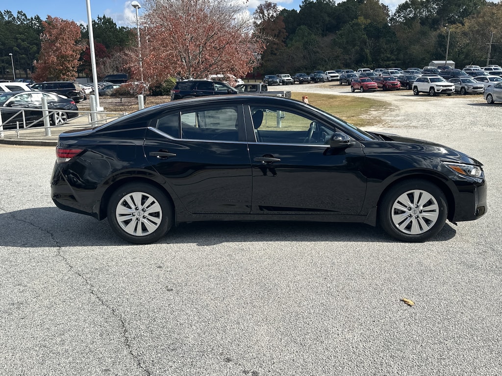 CVT with Xtronic, Charcoal Cloth, 4 Speakers, ABS brakes, Air Conditioning, AM/FM radio, Auto High-beam Headlights, Blind Spot Warning, Body Colored Splash Guards (4-Piece), Brake assist, Bumpers: body-color, Cloth Seat Trim, Delay-off headlights, Driver door bin, Driver vanity mirror, Dual front impact airbags, Dual front side impact airbags, Electronic Stability Control, Four wheel independent suspension, Front anti-roll bar, Front Bucket Seats, Front Center Armrest, Front reading lights, Fully automatic headlights, Illuminated entry, Knee airbag, Low tire pressure warning, NissanConnect featuring Apple CarPlay and Android Auto, Occupant sensing airbag, Outside temperature display, Overhead airbag, Overhead console, Panic alarm, Passenger door bin, Passenger vanity mirror, Power door mirrors, Power steering, Power windows, Radio data system, Rear anti-roll bar, Rear Parking Sensors, Rear side impact airbag, Rear window defroster, Remote keyless entry, Speed control, Speed-sensing steering, Split folding rear seat, Steering wheel mounted audio controls, Tachometer, Telescoping steering wheel, Tilt steering wheel, Traction control, Trip computer, Variably intermittent wipers, CVT with Xtronic, Charcoal Cloth. New vehicle price includes all manufacturer and dealer incentives. Must finance with NMAC at standard rates to receive displayed price. Cash price may vary depending on NMAC and Dealer incentives. Not everyone qualifies for NMAC financing. Price in lieu of any special APR incentives cannot be combined with other offers unless specifically disclosed by the dealer. Prices do not include tax, tag, title or Georgia Lemon Law fees. Displayed prices include dealer doc fee and electronic filing fee. All pre-owned vehicles may also be subject to additional reconditioning and certification fees. Super Black 2025 Nissan Sentra S FWD 2.0L I4 DOHC CVT with Xtronic