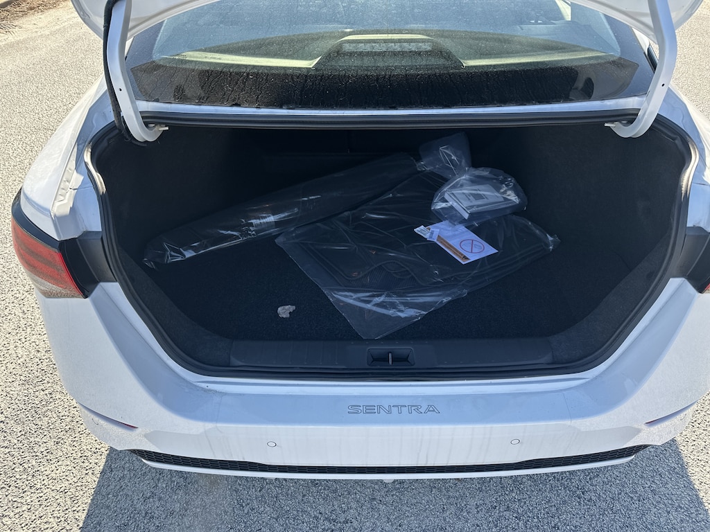 CVT with Xtronic, Charcoal Cloth, 16" Alloy Wheels, 4-Wheel Disc Brakes, 8 Speakers, ABS brakes, Air Conditioning, All-Weather Package, Alloy wheels, AM/FM radio: SiriusXM, Auto High-beam Headlights, Blind Spot Warning, Body Colored Splash Guards (4-Piece), Brake assist, Bumpers: body-color, Clear Rear Bumper Protector, Delay-off headlights, Door Sill Plates, Driver door bin, Driver vanity mirror, Dual front impact airbags, Dual front side impact airbags, Dual Zone Auto Climate Control, Electronic Stability Control, Four wheel independent suspension, Front anti-roll bar, Front Bucket Seats, Front Center Armrest, Front reading lights, Fully automatic headlights, Heated Exterior Mirrors, Heated Front Seats, Illuminated entry, Knee airbag, Leather-Wrapped Heated Steering Wheel, Low tire pressure warning, NissanConnect featuring Apple CarPlay and Android Auto, Occupant sensing airbag, Outside temperature display, Overhead airbag, Overhead console, Panic alarm, Passenger door bin, Passenger vanity mirror, Power door mirrors, Power steering, Power windows, Radio data system, Rear anti-roll bar, Rear Parking Sensors, Rear side impact airbag, Rear window defroster, Remote Engine Start, Remote keyless entry, Security system, Speed control, Speed-sensing steering, Split folding rear seat, Steering wheel mounted audio controls, Tachometer, Telescoping steering wheel, Tilt steering wheel, Traction control, Trip computer, Upgraded Cloth Seat Trim, Variably intermittent wipers, CVT with Xtronic, Charcoal Cloth. New vehicle price includes all manufacturer and dealer incentives. Must finance with NMAC at standard rates to receive displayed price. Cash price may vary depending on NMAC and Dealer incentives. Not everyone qualifies for NMAC financing. Price in lieu of any special APR incentives cannot be combined with other offers unless specifically disclosed by the dealer. Prices do not include tax, tag, title or Georgia Lemon Law fees. Displayed prices include dealer doc fee and electronic filing fee. All pre-owned vehicles may also be subject to additional reconditioning and certification fees. Fresh Powder 2025 Nissan Sentra SV FWD 2.0L I4 DOHC CVT with Xtronic