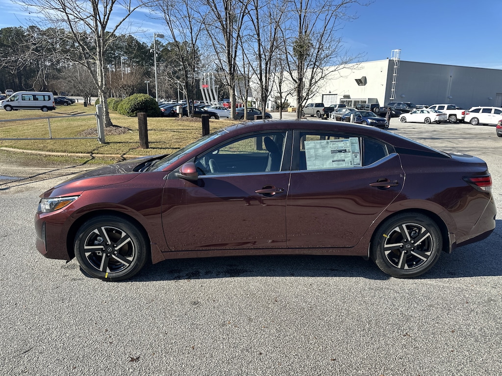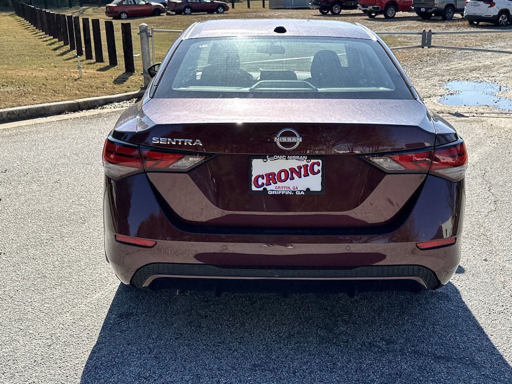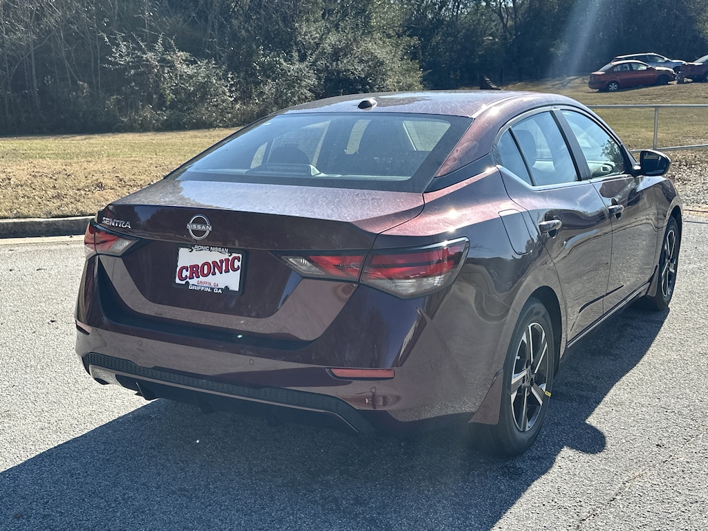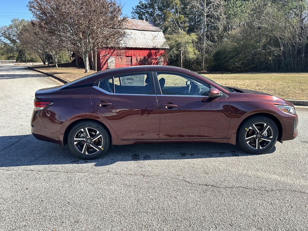 CVT with Xtronic, Charcoal Cloth, 16" Alloy Wheels, 4-Wheel Disc Brakes, 8 Speakers, ABS brakes, Air Conditioning, All-Weather Package, Alloy wheels, AM/FM radio: SiriusXM, Auto High-beam Headlights, Blind Spot Warning, Body Colored Splash Guards (4-Piece), Brake assist, Bumpers: body-color, Carpeted Floor Mats with Trunk Mat, Clear Rear Bumper Protector, Delay-off headlights, Door Sill Plates, Driver door bin, Driver vanity mirror, Dual front impact airbags, Dual front side impact airbags, Dual Zone Auto Climate Control, Electronic Stability Control, Four wheel independent suspension, Front anti-roll bar, Front Bucket Seats, Front Center Armrest, Front reading lights, Fully automatic headlights, Heated Exterior Mirrors, Heated Front Seats, Illuminated entry, Knee airbag, Leather-Wrapped Heated Steering Wheel, Low tire pressure warning, NissanConnect featuring Apple CarPlay and Android Auto, Occupant sensing airbag, Outside temperature display, Overhead airbag, Overhead console, Panic alarm, Passenger door bin, Passenger vanity mirror, Power door mirrors, Power steering, Power windows, Radio data system, Radio: AM/FM with RDS/MP3/Aux-in, Rear anti-roll bar, Rear Parking Sensors, Rear side impact airbag, Rear window defroster, Remote Engine Start, Remote keyless entry, Security system, Speed control, Speed-sensing steering, Split folding rear seat, Steering wheel mounted audio controls, Tachometer, Telescoping steering wheel, Tilt steering wheel, Traction control, Trip computer, Upgraded Cloth Seat Trim, Variably intermittent wipers, CVT with Xtronic, Charcoal Cloth. New vehicle price includes all manufacturer and dealer incentives. Must finance with NMAC at standard rates to receive displayed price. Cash price may vary depending on NMAC and Dealer incentives. Not everyone qualifies for NMAC financing. Price in lieu of any special APR incentives cannot be combined with other offers unless specifically disclosed by the dealer. Prices do not include tax, tag, title or Georgia Lemon Law fees. Displayed prices include dealer doc fee and electronic filing fee. All pre-owned vehicles may also be subject to additional reconditioning and certification fees. Rosewood 2025 Nissan Sentra SV FWD 2.0L I4 DOHC CVT with Xtronic
