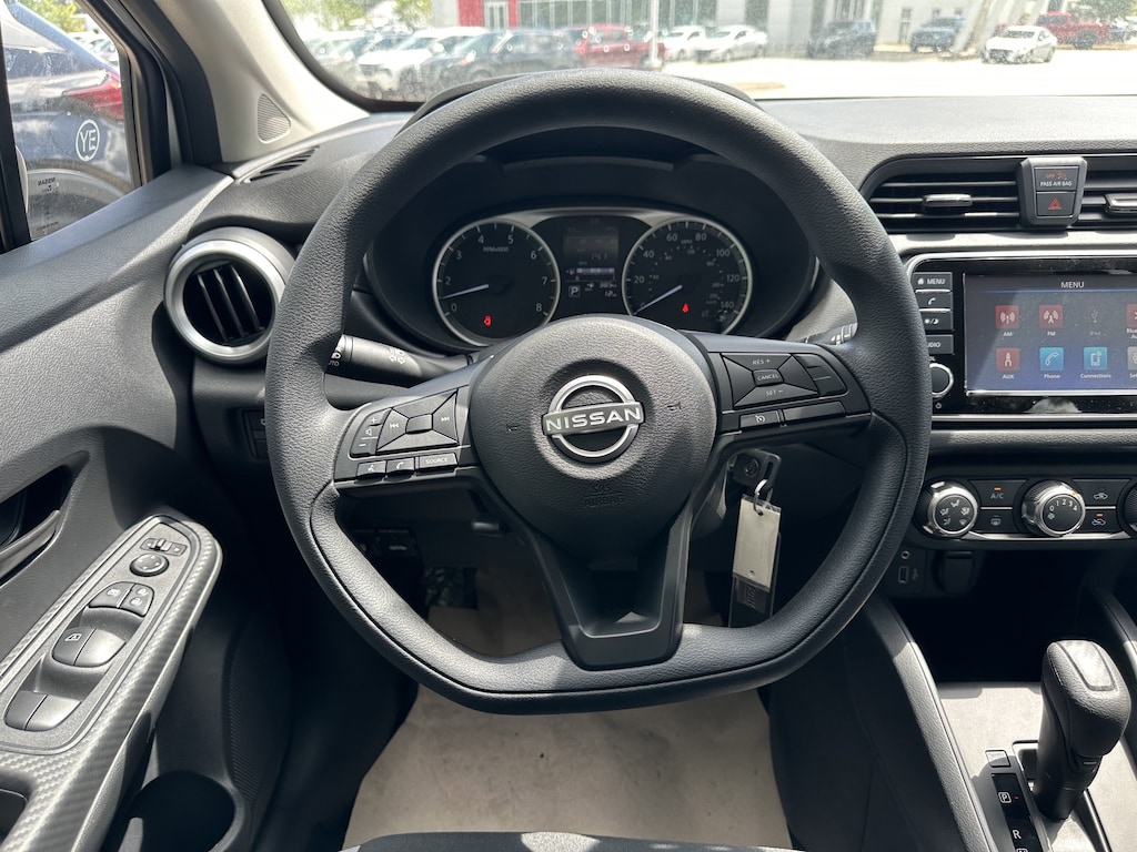 15" Steel Wheels w/Full Wheel Covers, 4 Speakers, ABS brakes, Air Conditioning, AM/FM radio, Auto High-beam Headlights, Brake assist, Bumpers: body-color, Cloth Seat Trim, Delay-off headlights, Driver door bin, Driver vanity mirror, Dual front impact airbags, Dual front side impact airbags, Electronic Stability Control, Front anti-roll bar, Front Bucket Seats, Front reading lights, Front wheel independent suspension, Fully automatic headlights, Illuminated entry, Knee airbag, Low tire pressure warning, Occupant sensing airbag, Outside temperature display, Overhead airbag, Panic alarm, Passenger door bin, Passenger vanity mirror, Power door mirrors, Power steering, Power windows, Radio data system, Radio: AM/FM Audio System, Rear Parking Sensors, Rear side impact airbag, Rear window defroster, Speed control, Steering wheel mounted audio controls, Tachometer, Telescoping steering wheel, Tilt steering wheel, Traction control, Trip computer, Variably intermittent wipers. New vehicle price includes all manufacturer and dealer incentives. Must finance with NMAC at standard rates to receive displayed price. Cash price may vary depending on NMAC and Dealer incentives. Not everyone qualifies for NMAC financing. Price in lieu of any special APR incentives cannot be combined with other offers unless specifically disclosed by the dealer. Prices do not include tax, tag, title or Georgia Lemon Law fees. Displayed prices include dealer doc fee and electronic filing fee. All pre-owned vehicles may also be subject to additional reconditioning and certification fees. Brilliant Silver Metallic 2025 Nissan Versa 1.6 S FWD 1.6L I4 DOHC 16V CVT