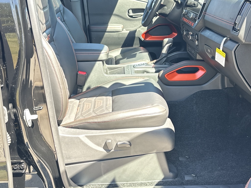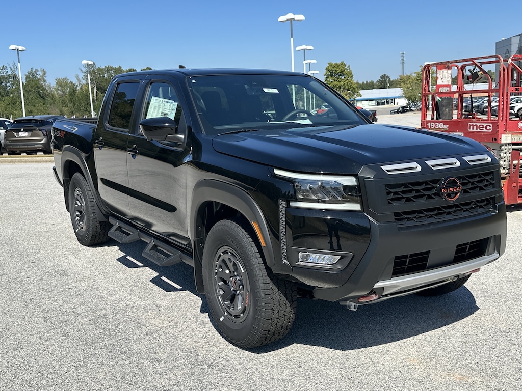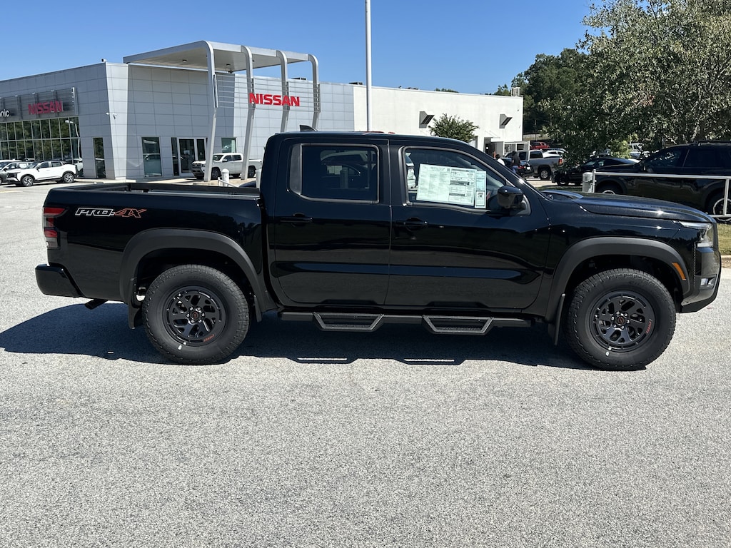 4WD, 17" Painted Alloy Wheels, 3.692 Axle Ratio, 4-Wheel Disc Brakes, 6 Speakers, ABS brakes, Air Conditioning, Alloy wheels, AM/FM radio: SiriusXM, Anti-whiplash front head restraints, Auto High-beam Headlights, Automatic temperature control, Blind Spot Warning, Brake assist, Bumpers: body-color, Delay-off headlights, Driver door bin, Driver vanity mirror, Dual front impact airbags, Dual front side impact airbags, Electronic Stability Control, Electronic Tailgate Lock, Emergency communication system, Essentials Kit, Front anti-roll bar, Front Bucket Seats, Front Center Armrest, Front dual zone A/C, Front fog lights, Front reading lights, Front wheel independent suspension, Fully automatic headlights, Heated Front Bucket Seats, Heated front seats, Heated steering wheel, Illuminated entry, Knee airbag, Leather Seat Trim, Leather steering wheel, Low tire pressure warning, Mud Flaps, Occupant sensing airbag, Off-Road Style Step Rails, Overhead airbag, Overhead console, Panic alarm, Passenger door bin, Passenger vanity mirror, Power door mirrors, Power driver seat, Power passenger seat, Power steering, Power windows, PRO Embroidered Premium Cloth Seat Trim, PRO Premium Package, PRO-4X Carpeted Floor Mats, PRO-4X Convenience Package, Radio data system, Radio: SXM/AM/FM/AUX/USB Audio System, Rear anti-roll bar, Rear seat center armrest, Rear side impact airbag, Rear step bumper, Remote keyless entry, Security system, Speed control, Speed-sensing steering, Split folding rear seat, Steering wheel mounted audio controls, Tachometer, Telescoping steering wheel, Tilt steering wheel, Tow Package (T11), Traction control, Trip computer, Variably intermittent wipers, Voltmeter, Wireless Apple CarPlay/Wireless Android Auto, 4WD. New vehicle price includes all manufacturer and dealer incentives. Must finance with NMAC at standard rates to receive displayed price. Cash price may vary depending on NMAC and Dealer incentives. Not everyone qualifies for NMAC financing. Price in lieu of any special APR incentives cannot be combined with other offers unless specifically disclosed by the dealer. Prices do not include tax, tag, title or Georgia Lemon Law fees. Displayed prices include dealer doc fee and electronic filing fee. All pre-owned vehicles may also be subject to additional reconditioning and certification fees. Super Black 2026 Nissan Frontier PRO-4X 4WD 3.8L DI DOHC 24V V6 9-Speed Automatic with Overdrive