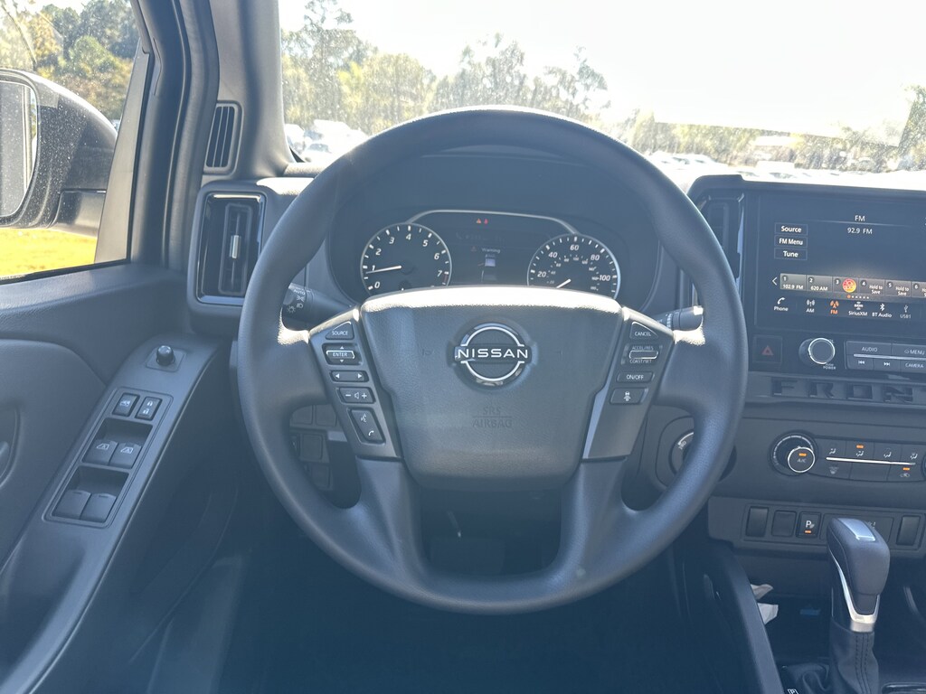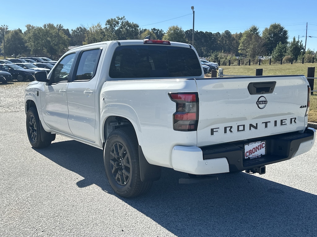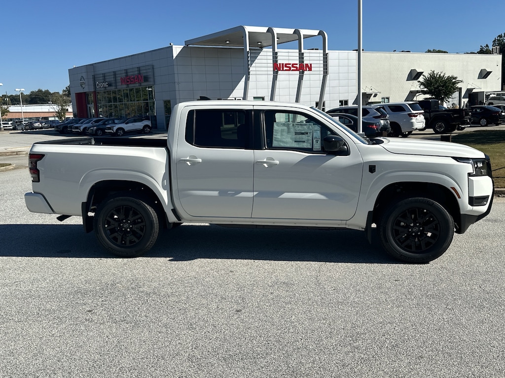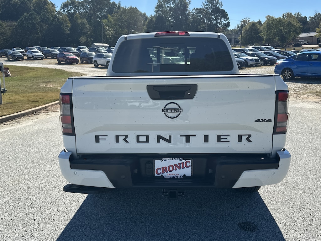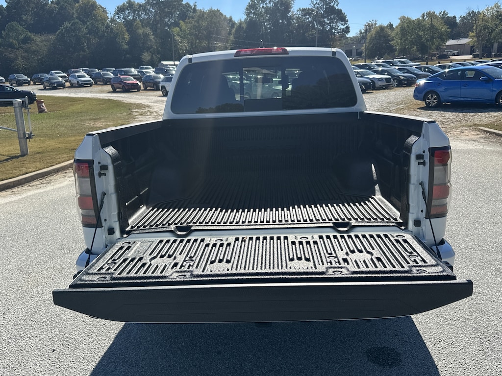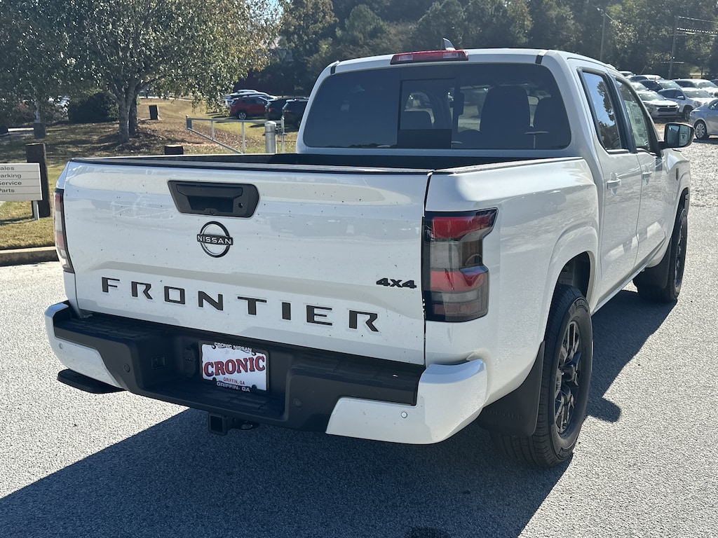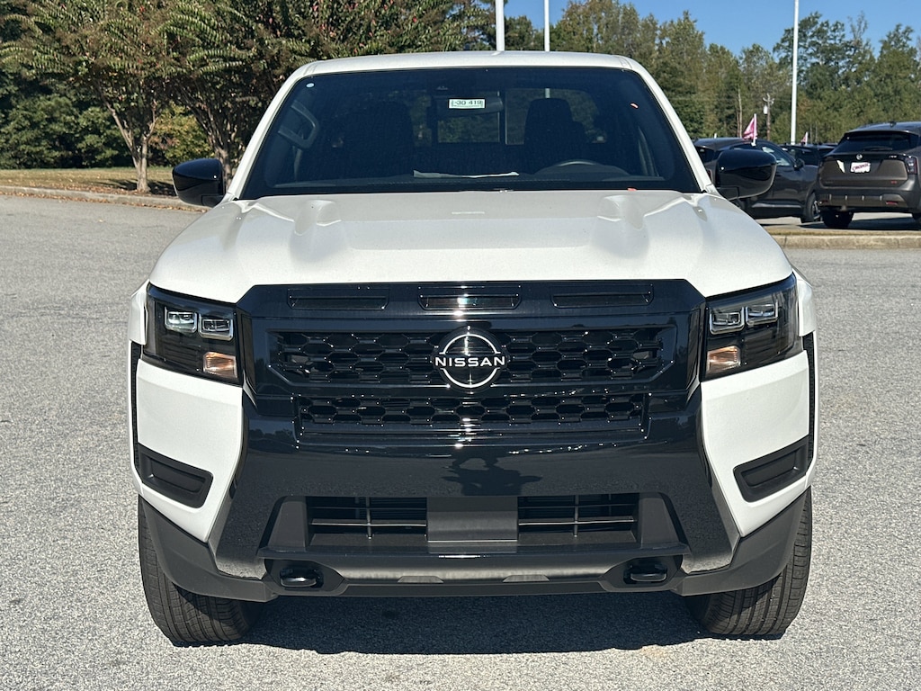 4WD, 17" Alloy Wheels, 3.692 Axle Ratio, 4-Wheel Disc Brakes, 6 Speakers, ABS brakes, Air Conditioning, Alloy wheels, AM/FM radio: SiriusXM, Anti-whiplash front head restraints, Auto High-beam Headlights, Black Tailgate Logo Insert, Blind Spot Warning, Brake assist, Bumpers: body-color, Carpeted Floor Mats, Dark Armor Package, Dark FRONTIER Tailgate Lettering, Dark Grill Surround/Mesh/Inner Fascia, Dark Mirror Caps, Delay-off headlights, Driver door bin, Driver vanity mirror, Drop-In Bed Liner & Bumper Step, Dual front impact airbags, Dual front side impact airbags, Electronic Stability Control, Emergency communication system, Front anti-roll bar, Front Bucket Seats, Front Center Armrest, Front reading lights, Front wheel independent suspension, Fully automatic headlights, Illuminated entry, Knee airbag, Low tire pressure warning, Occupant sensing airbag, Overhead airbag, Overhead console, Panic alarm, Passenger door bin, Passenger vanity mirror, Power door mirrors, Power driver seat, Power steering, Power windows, Premium Cloth Seat Trim, Radio data system, Radio: SXM/AM/FM/AUX/USB Audio System, Rear anti-roll bar, Rear seat center armrest, Rear side impact airbag, Rear step bumper, Remote Engine Start, Remote keyless entry, Security system, Speed control, Speed-sensing steering, Splash Guards, Split folding rear seat, Steering wheel mounted audio controls, Tachometer, Telescoping steering wheel, Tilt steering wheel, Tow Package, Tow/Haul Mode Switch, Traction control, Trip computer, Variably intermittent wipers, Voltmeter, Wheels: 17" Dark, Wireless Apple CarPlay/Wireless Android Auto, 4WD. New vehicle price includes all manufacturer and dealer incentives. Must finance with NMAC at standard rates to receive displayed price. Cash price may vary depending on NMAC and Dealer incentives. Not everyone qualifies for NMAC financing. Price in lieu of any special APR incentives cannot be combined with other offers unless specifically disclosed by the dealer. Prices do not include tax, tag, title or Georgia Lemon Law fees. Displayed prices include dealer doc fee and electronic filing fee. All pre-owned vehicles may also be subject to additional reconditioning and certification fees. Glacier White 2026 Nissan Frontier SV 4WD 3.8L DI DOHC 24V V6 9-Speed Automatic with Overdrive