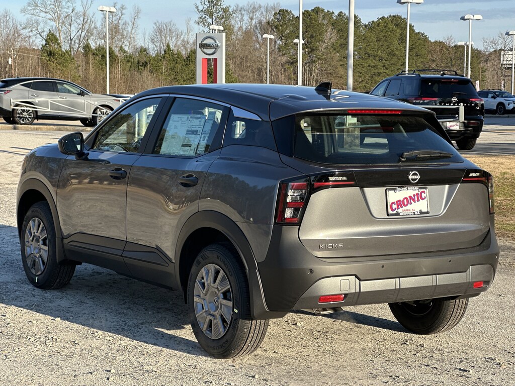 New vehicle price includes all manufacturer and dealer incentives. Must finance with NMAC at standard rates to receive displayed price. Cash price may vary depending on NMAC and Dealer incentives. Not everyone qualifies for NMAC financing. Price in lieu of any special APR incentives cannot be combined with other offers unless specifically disclosed by the dealer. Prices do not include tax, tag, title or Georgia Lemon Law fees. Displayed prices include dealer doc fee and electronic filing fee. All pre-owned vehicles may also be subject to additional reconditioning and certification fees. Gun Metallic 2026 Nissan Kicks S FWD 2.0L DOHC CVT with Xtronic