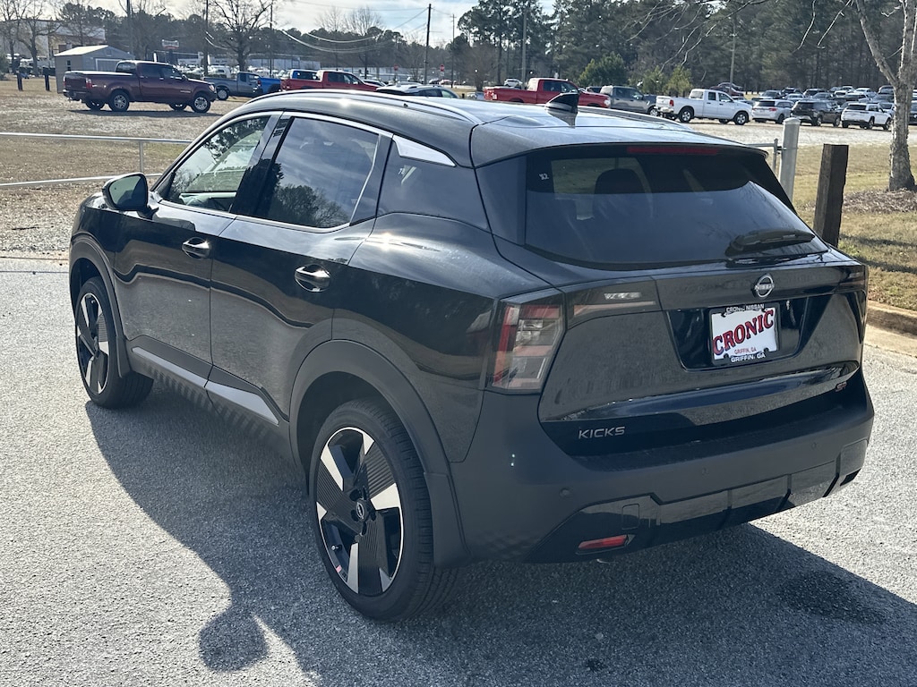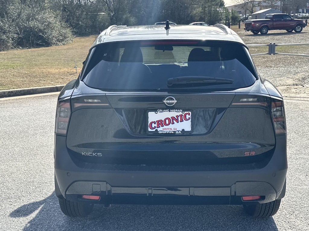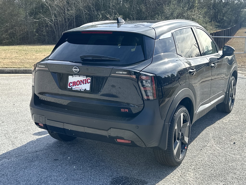 17" Alloy Wheels, 19" Alloy Wheels, 4-Wheel Disc Brakes, 6 Speakers, ABS brakes, Air Conditioning, Alloy wheels, AM/FM radio, Auto High-beam Headlights, Automatic temperature control, Brake assist, Bumpers: body-color, Carpeted Floor Mats & Underfloor Protector, Delay-off headlights, Driver door bin, Driver vanity mirror, Dual front impact airbags, Dual front side impact airbags, Electronic Stability Control, Emergency communication system: NissanConnect Services, Exterior Parking Camera Rear, Front anti-roll bar, Front Bucket Seats, Front Center Armrest, Front reading lights, Front wheel independent suspension, Fully automatic headlights, Garage door transmitter: myQ Connected Garage, Illuminated entry, Knee airbag, Leather Shift Knob, Leather steering wheel, Low tire pressure warning, NissanConnect featuring Apple CarPlay and Android Auto, Occupant sensing airbag, Outside temperature display, Overhead airbag, Overhead console, Panic alarm, Passenger door bin, Passenger vanity mirror, Power door mirrors, Power steering, Power windows, Radio data system, Radio: AM/FM/SiriusXM Audio System, Rear anti-roll bar, Rear reading lights, Rear seat center armrest, Rear side impact airbag, Rear window defroster, Rear window wiper, Remote keyless entry, Security system, Speed control, Speed-sensing steering, Splash Guards, Split folding rear seat, Spoiler, Sport Leatherette w/Cloth Insert Seat Trim, Sport steering wheel, Steering wheel mounted audio controls, Tachometer, Telescoping steering wheel, Tilt steering wheel, Traction control, Trip computer, Turn signal indicator mirrors, Variably intermittent wipers. New vehicle price includes all manufacturer and dealer incentives. Must finance with NMAC at standard rates to receive displayed price. Cash price may vary depending on NMAC and Dealer incentives. Not everyone qualifies for NMAC financing. Price in lieu of any special APR incentives cannot be combined with other offers unless specifically disclosed by the dealer. Prices do not include tax, tag, title or Georgia Lemon Law fees. Displayed prices include dealer doc fee and electronic filing fee. All pre-owned vehicles may also be subject to additional reconditioning and certification fees. Super Black 2026 Nissan Kicks SR FWD 2.0L DOHC CVT with Xtronic