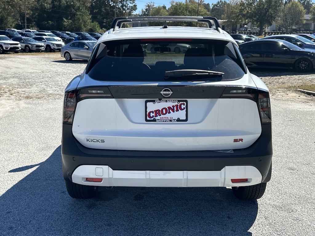 17" Alloy Wheels, 19" Alloy Wheels, 4-Wheel Disc Brakes, 6 Speakers, ABS brakes, Air Conditioning, Alloy wheels, AM/FM radio, Auto High-beam Headlights, Automatic temperature control, Brake assist, Bumpers: body-color, Carpeted Floor Mats & Underfloor Protector, Crossbars, Delay-off headlights, Driver door bin, Driver vanity mirror, Dual front impact airbags, Dual front side impact airbags, Electronic Stability Control, Emergency communication system: NissanConnect Services, Exterior Parking Camera Rear, Front anti-roll bar, Front Bucket Seats, Front Center Armrest, Front reading lights, Front wheel independent suspension, Fully automatic headlights, Garage door transmitter: myQ Connected Garage, Illuminated entry, Knee airbag, Leather Shift Knob, Leather steering wheel, Low tire pressure warning, NissanConnect featuring Apple CarPlay and Android Auto, Occupant sensing airbag, Outside temperature display, Overhead airbag, Overhead console, Panic alarm, Passenger door bin, Passenger vanity mirror, Power door mirrors, Power steering, Power windows, Premium Paint, Radio data system, Radio: AM/FM/SiriusXM Audio System, Rear anti-roll bar, Rear reading lights, Rear seat center armrest, Rear side impact airbag, Rear window defroster, Rear window wiper, Remote keyless entry, Security system, Speed control, Speed-sensing steering, Splash Guards, Split folding rear seat, Spoiler, Sport Leatherette w/Cloth Insert Seat Trim, Sport steering wheel, Steering wheel mounted audio controls, Tachometer, Telescoping steering wheel, Tilt steering wheel, Traction control, Trip computer, Turn signal indicator mirrors, Variably intermittent wipers. New vehicle price includes all manufacturer and dealer incentives. Must finance with NMAC at standard rates to receive displayed price. Cash price may vary depending on NMAC and Dealer incentives. Not everyone qualifies for NMAC financing. Price in lieu of any special APR incentives cannot be combined with other offers unless specifically disclosed by the dealer. Prices do not include tax, tag, title or Georgia Lemon Law fees. Displayed prices include dealer doc fee and electronic filing fee. All pre-owned vehicles may also be subject to additional reconditioning and certification fees. Aspen White 2026 Nissan Kicks SR FWD 2.0L DOHC CVT with Xtronic