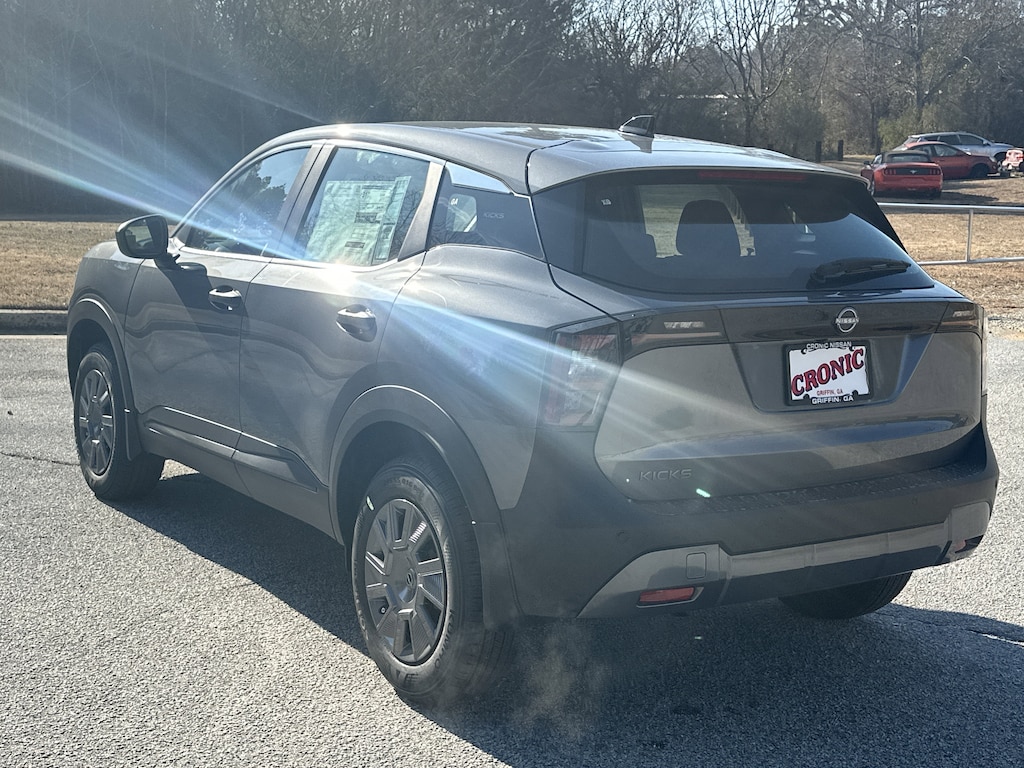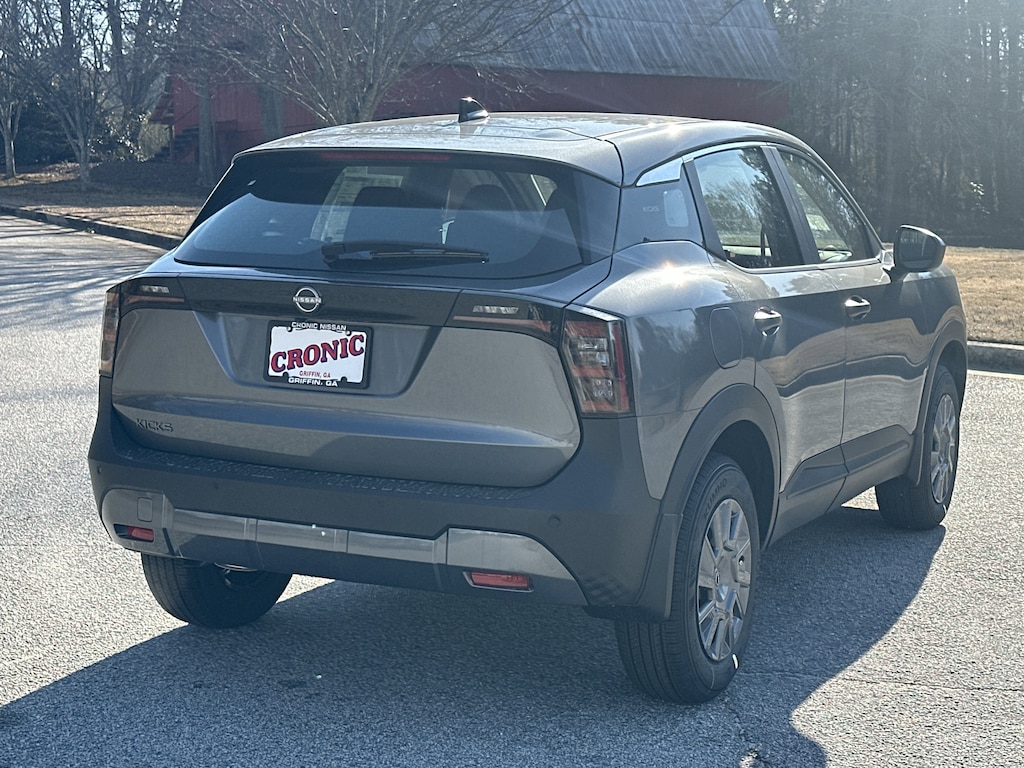 New vehicle price includes all manufacturer and dealer incentives. Must finance with NMAC at standard rates to receive displayed price. Cash price may vary depending on NMAC and Dealer incentives. Not everyone qualifies for NMAC financing. Price in lieu of any special APR incentives cannot be combined with other offers unless specifically disclosed by the dealer. Prices do not include tax, tag, title or Georgia Lemon Law fees. Displayed prices include dealer doc fee and electronic filing fee. All pre-owned vehicles may also be subject to additional reconditioning and certification fees. Gun Metallic 2026 Nissan Kicks S FWD 2.0L DOHC CVT with Xtronic