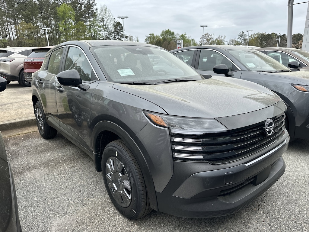 4 Speakers, 4-Wheel Disc Brakes, ABS brakes, Air Conditioning, AM/FM radio, Auto High-beam Headlights, Blind Spot Warning, Brake assist, Bumpers: body-color, Carpeted Floor Mats and Cargo Mat, Cloth Seat Trim, Driver door bin, Driver vanity mirror, Driver's Seat Mounted Armrest, Dual front impact airbags, Dual front side impact airbags, Electronic Stability Control, Emergency communication system, Exterior Parking Camera Rear, Front anti-roll bar, Front Bucket Seats, Front reading lights, Front wheel independent suspension, Fully automatic headlights, Illuminated entry, Knee airbag, Low tire pressure warning, NissanConnect featuring Apple CarPlay and Android Auto, Occupant sensing airbag, Outside temperature display, Overhead airbag, Panic alarm, Passenger door bin, Passenger vanity mirror, Power door mirrors, Power steering, Power windows, Radio data system, Radio: AM/FM/SiriusXM Audio System, Rear anti-roll bar, Rear reading lights, Rear side impact airbag, Rear window defroster, Rear window wiper, Remote keyless entry, Security system, Speed control, Speed-sensing steering, Splash Guards, Split folding rear seat, Spoiler, Sport steering wheel, Steering wheel mounted audio controls, Tachometer, Telescoping steering wheel, Tilt steering wheel, Traction control, Trip computer, Variably intermittent wipers, Wheels: 16" Steel with Full Covers. New vehicle price includes all manufacturer and dealer incentives. Must finance with NMAC at standard rates to receive displayed price. Cash price may vary depending on NMAC and Dealer incentives. Not everyone qualifies for NMAC financing. Price in lieu of any special APR incentives cannot be combined with other offers unless specifically disclosed by the dealer. Prices do not include tax, tag, title or Georgia Lemon Law fees. Displayed prices include dealer doc fee and electronic filing fee. All pre-owned vehicles may also be subject to additional reconditioning and certification fees. Gun Metallic 2026 Nissan Kicks S FWD 2.0L DOHC CVT with Xtronic