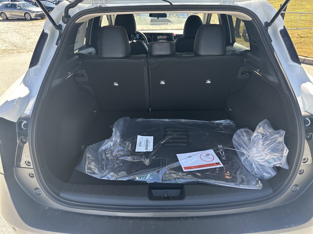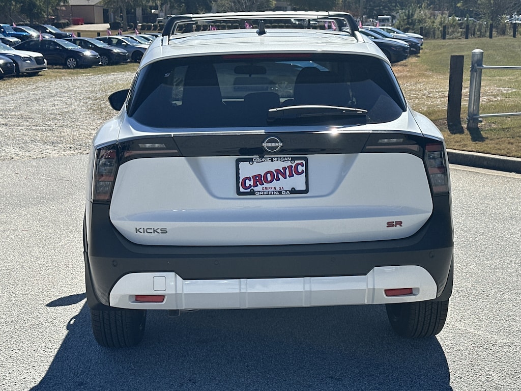 17" Alloy Wheels, 19" Alloy Wheels, 4-Wheel Disc Brakes, 6 Speakers, ABS brakes, Air Conditioning, Alloy wheels, AM/FM radio, Auto High-beam Headlights, Automatic temperature control, Brake assist, Bumpers: body-color, Carpeted Floor Mats & Underfloor Protector, Crossbars, Delay-off headlights, Driver door bin, Driver vanity mirror, Dual front impact airbags, Dual front side impact airbags, Electronic Stability Control, Emergency communication system: NissanConnect Services, Exterior Parking Camera Rear, Front anti-roll bar, Front Bucket Seats, Front Center Armrest, Front reading lights, Front wheel independent suspension, Fully automatic headlights, Garage door transmitter: myQ Connected Garage, Illuminated entry, Knee airbag, Leather Shift Knob, Leather steering wheel, Low tire pressure warning, NissanConnect featuring Apple CarPlay and Android Auto, Occupant sensing airbag, Outside temperature display, Overhead airbag, Overhead console, Panic alarm, Passenger door bin, Passenger vanity mirror, Power door mirrors, Power steering, Power windows, Premium Paint, Radio data system, Radio: AM/FM/SiriusXM Audio System, Rear anti-roll bar, Rear reading lights, Rear seat center armrest, Rear side impact airbag, Rear window defroster, Rear window wiper, Remote keyless entry, Security system, Speed control, Speed-sensing steering, Splash Guards, Split folding rear seat, Spoiler, Sport Leatherette w/Cloth Insert Seat Trim, Sport steering wheel, Steering wheel mounted audio controls, Tachometer, Telescoping steering wheel, Tilt steering wheel, Traction control, Trip computer, Turn signal indicator mirrors, Variably intermittent wipers. New vehicle price includes all manufacturer and dealer incentives. Must finance with NMAC at standard rates to receive displayed price. Cash price may vary depending on NMAC and Dealer incentives. Not everyone qualifies for NMAC financing. Price in lieu of any special APR incentives cannot be combined with other offers unless specifically disclosed by the dealer. Prices do not include tax, tag, title or Georgia Lemon Law fees. Displayed prices include dealer doc fee and electronic filing fee. All pre-owned vehicles may also be subject to additional reconditioning and certification fees. Aspen White 2026 Nissan Kicks SR FWD 2.0L DOHC CVT with Xtronic