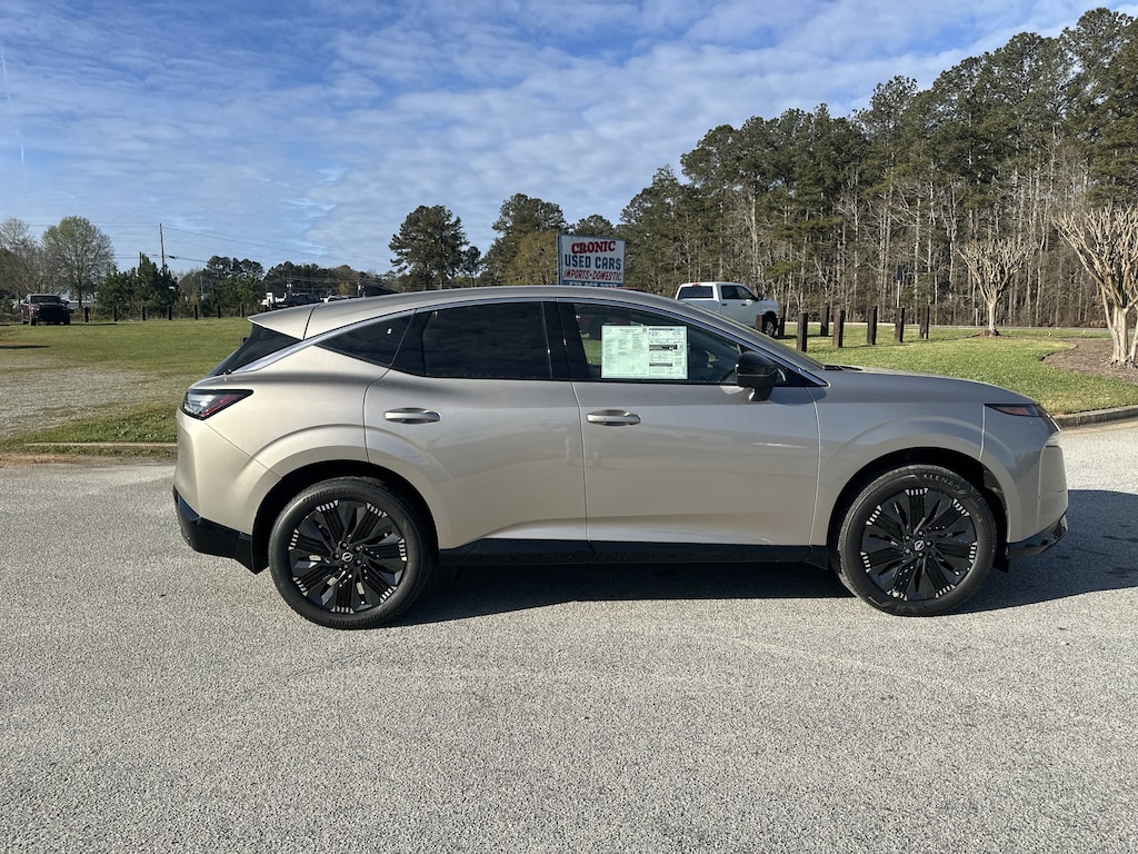 9-Speed Automatic, AWD, 10 Speakers, 21" Alloy Wheels, 3-Position Cargo Area Protector, 3D Around View Monitor, 4-Wheel Disc Brakes, ABS brakes, Air Conditioning, Alloy wheels, AM/FM radio: SiriusXM w/360L, Auto High-beam Headlights, Auto tilt-away steering wheel, Auto-dimming Rear-View mirror, Automatic temperature control, Brake assist, Bumpers: body-color, Cargo Net, Cargo Package, Carpeted Floor and Cargo Mats, Child-Seat-Sensing Airbag, Compass, Delay-off headlights, Driver Attention Warning, Driver Distraction Warning, Driver door bin, Driver vanity mirror, Dual front impact airbags, Dual front side impact airbags, Electronic Stability Control, Emergency communication system: NissanConnect Services, First Aid Kit, Four wheel independent suspension, Front anti-roll bar, Front Bucket Seats, Front Center Armrest, Front dual zone A/C, Front reading lights, Fully automatic headlights, Garage door transmitter: HomeLink, Heads-Up Display, Heated and Ventilated Front Bucket Seats with Massage, Heated door mirrors, Heated front seats, Heated rear seats, Heated steering wheel, Illuminated Cargo Scuff Plate, Illuminated entry, Illuminated Kick Plates, Knee airbag, Low tire pressure warning, Memory seat, Navigation system: NissanConnect with Navigation and Services, Occupant sensing airbag, Outside temperature display, Overhead airbag, Overhead console, Painted Splash Guards, Panic alarm, Panoramic Headliner Illumination, Passenger door bin, Passenger vanity mirror, Power door mirrors, Power driver seat, Power Liftgate, Power moonroof: Panoramic, Power passenger seat, Power steering, Power windows, ProPILOT Assist 2.1, Quilted Semi-Aniline Leather-Appointed Seat Trim, Radio data system, Radio: NissanConnect with 4 Hybrid, Rain sensing wipers, Rear anti-roll bar, Rear reading lights, Rear seat center armrest, Rear side impact airbag, Rear window defroster, Rear window wiper, Remote keyless entry, Retractable Cargo Cover, Security system, Speed control, Speed-Sensitive Wipers, Split folding rear seat, Spoiler, Steering wheel memory, Steering wheel mounted audio controls, Tachometer, Technology Package, Telescoping steering wheel, Tilt steering wheel, Traction control, Trip computer, Turn signal indicator mirrors, Variably intermittent wipers, Ventilated front seats, Wireless Apple CarPlay/Wireless Android Auto, 9-Speed Automatic, AWD. New vehicle price includes all manufacturer and dealer incentives. Must finance with NMAC at standard rates to receive displayed price. Cash price may vary depending on NMAC and Dealer incentives. Not everyone qualifies for NMAC financing. Price in lieu of any special APR incentives cannot be combined with other offers unless specifically disclosed by the dealer. Prices do not include tax, tag, title or Georgia Lemon Law fees. Displayed prices include dealer doc fee and electronic filing fee. All pre-owned vehicles may also be subject to additional reconditioning and certification fees. Champagne Silver Metallic 2026 Nissan Murano Platinum AWD I4 9-Speed Automatic