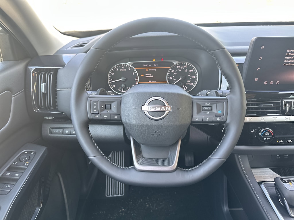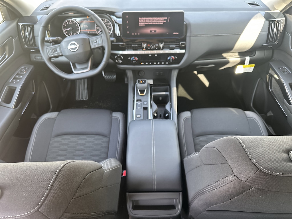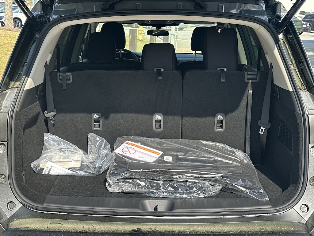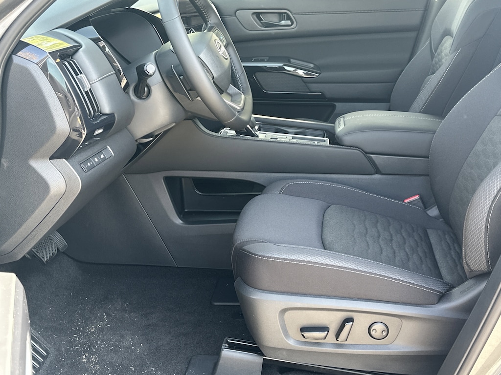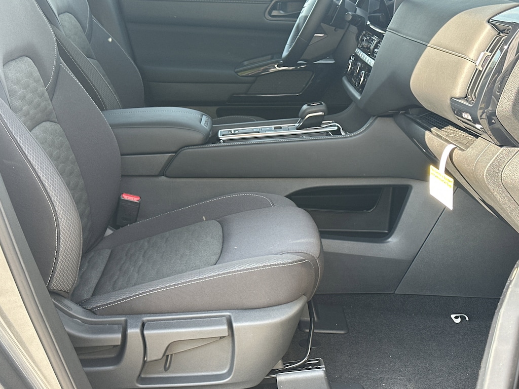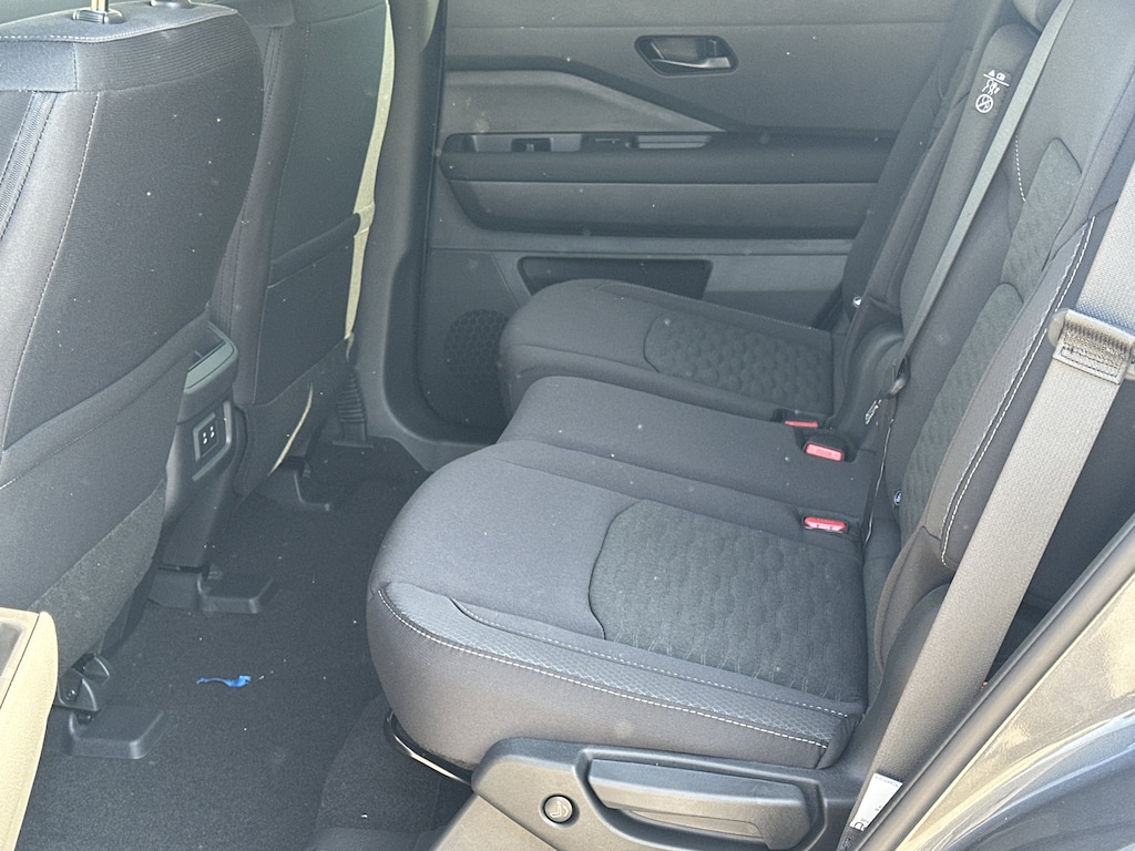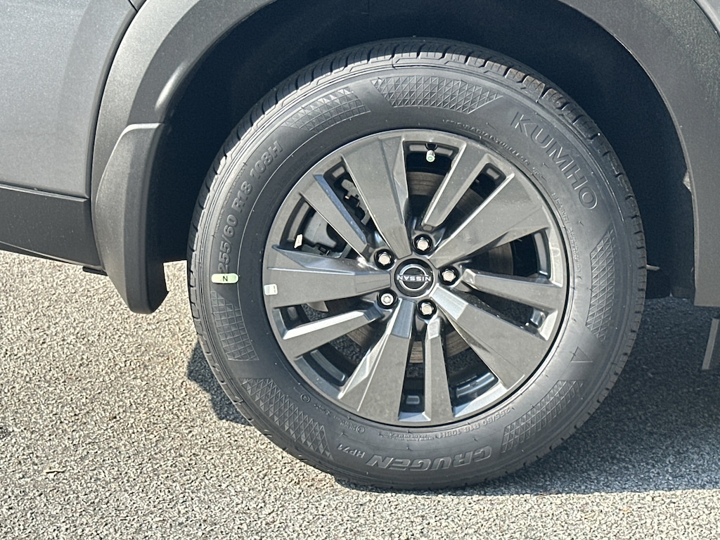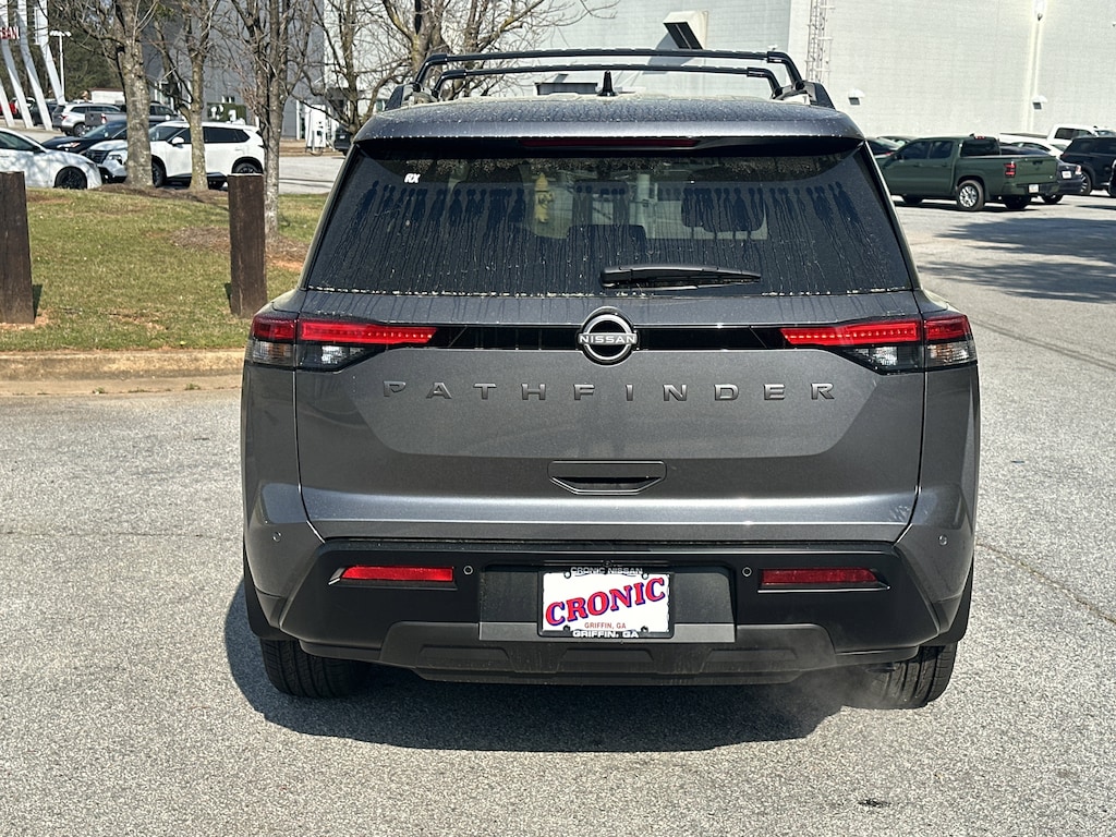 18" Painted Alloy Wheels, 3rd row seats: bench, 4-Piece Black Splash Guards, 4-Wheel Disc Brakes, 6 Speakers, ABS brakes, Air Conditioning, Alloy wheels, AM/FM radio: SiriusXM w/360L, Auto High-beam Headlights, Automatic temperature control, Bench Seat Carpeted Floor Mats, Brake assist, Bumpers: body-color, Cloth Seating Surfaces, Cross Bars, Delay-off headlights, Driver door bin, Driver vanity mirror, Dual front impact airbags, Dual front side impact airbags, Electronic Stability Control, Emergency communication system: NissanConnect Services, Four wheel independent suspension, Front anti-roll bar, Front Bucket Seats, Front Center Armrest, Front dual zone A/C, Front reading lights, Fully automatic headlights, Garage door transmitter: myQ Connected Garage, Heated door mirrors, Heated Front Bucket Seats, Heated front seats, Illuminated entry, Knee airbag, Low tire pressure warning, NissanConnect featuring Apple CarPlay and Android Auto, Occupant sensing airbag, Outside temperature display, Overhead airbag, Overhead console, Panic alarm, Passenger door bin, Passenger vanity mirror, Power door mirrors, Power driver seat, Power Liftgate, Power steering, Power windows, Radio data system, Radio: AM/FM Audio System with NissanConnect, Rear air conditioning, Rear anti-roll bar, Rear reading lights, Rear seat center armrest, Rear side impact airbag, Rear window defroster, Rear window wiper, Reclining 3rd row seat, Remote keyless entry, Security system, Speed control, Speed-sensing steering, Split folding rear seat, Spoiler, Steering wheel mounted audio controls, Tachometer, Telescoping steering wheel, Tilt steering wheel, Traction control, Trip computer, Variably intermittent wipers. New vehicle price includes all manufacturer and dealer incentives. Must finance with NMAC at standard rates to receive displayed price. Cash price may vary depending on NMAC and Dealer incentives. Not everyone qualifies for NMAC financing. Price in lieu of any special APR incentives cannot be combined with other offers unless specifically disclosed by the dealer. Prices do not include tax, tag, title or Georgia Lemon Law fees. Displayed prices include dealer doc fee and electronic filing fee. All pre-owned vehicles may also be subject to additional reconditioning and certification fees. Gun Metallic 2026 Nissan Pathfinder SV FWD 3.5L V6 DOHC 9-Speed Automatic