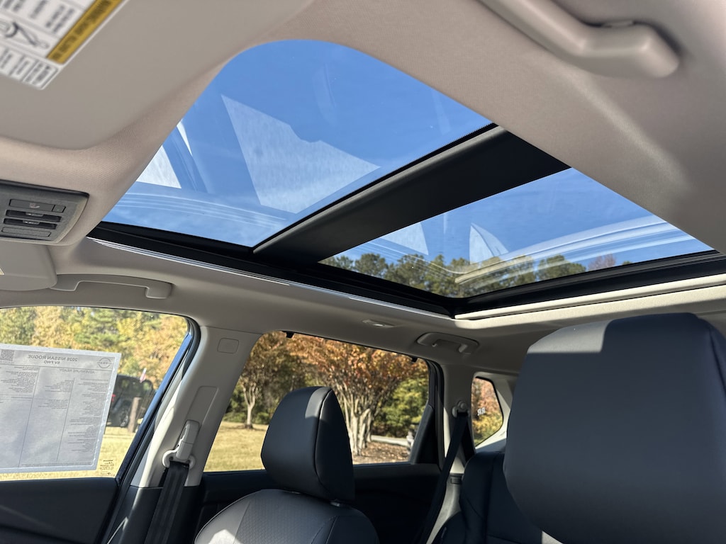 4-Wheel Disc Brakes, 6 Speakers, ABS brakes, Air Conditioning, Alloy wheels, AM/FM radio: Sirius, Apple CarPlay/Android Auto, Auto High-beam Headlights, Automatic temperature control, Black Splash Guards (Set of 4) (B92), Brake assist, Bumpers: body-color, Chrome Rear Bumper Protector, Cold Weather Package, Delay-off headlights, Driver door bin, Driver vanity mirror, Dual front impact airbags, Dual front side impact airbags, Electronic Stability Control, Emergency communication system: NissanConnect Services, First Aid Kit, Floor Mats w/1-Piece Cargo Area Protector, Four wheel independent suspension, Front anti-roll bar, Front Bucket Seats, Front Center Armrest, Front dual zone A/C, Front reading lights, Fully automatic headlights, Heated door mirrors, Heated Front Seats, Heated Steering Wheel, Illuminated entry, Knee airbag, Leatherette Door Trim Inserts w/Stitch, Low tire pressure warning, Occupant sensing airbag, Outside temperature display, Overhead airbag, Overhead console, Panic alarm, Panoramic Moonroof, Passenger door bin, Passenger vanity mirror, Power door mirrors, Power driver seat, Power Liftgate, Power steering, Power windows, Prima-Tex Leatherette Seat Trim, Radio data system, Radio: AM/FM NissanConnect, Rear anti-roll bar, Rear Door Sunshades, Rear Personal Lights, Rear seat center armrest, Rear side impact airbag, Rear window defroster, Rear window wiper, Remote keyless entry, Silver Painted Roof Rails, Speed control, Speed-sensing steering, Speed-Sensitive Wipers, Split folding rear seat, Spoiler, Steering wheel mounted audio controls, SV Premium Package, Tachometer, Telescoping steering wheel, Tilt steering wheel, Traction control, Trip computer, Variably intermittent wipers. New vehicle price includes all manufacturer and dealer incentives. Must finance with NMAC at standard rates to receive displayed price. Cash price may vary depending on NMAC and Dealer incentives. Not everyone qualifies for NMAC financing. Price in lieu of any special APR incentives cannot be combined with other offers unless specifically disclosed by the dealer. Prices do not include tax, tag, title or Georgia Lemon Law fees. Displayed prices include dealer doc fee and electronic filing fee. All pre-owned vehicles may also be subject to additional reconditioning and certification fees. Deep Ocean Blue 2026 Nissan Rogue SV FWD 1.5L DOHC CVT with Xtronic