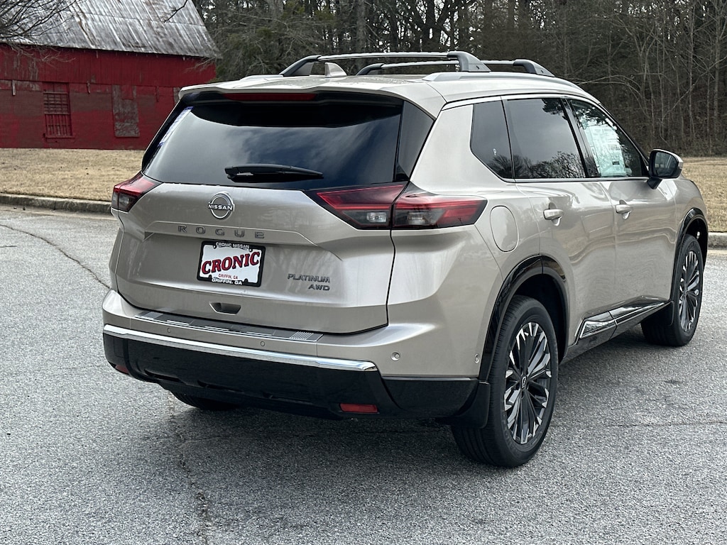 AWD. New vehicle price includes all manufacturer and dealer incentives. Must finance with NMAC at standard rates to receive displayed price. Cash price may vary depending on NMAC and Dealer incentives. Not everyone qualifies for NMAC financing. Price in lieu of any special APR incentives cannot be combined with other offers unless specifically disclosed by the dealer. Prices do not include tax, tag, title or Georgia Lemon Law fees. Displayed prices include dealer doc fee and electronic filing fee. All pre-owned vehicles may also be subject to additional reconditioning and certification fees. Champagne Silver Metallic 2026 Nissan Rogue Platinum AWD 1.5L DOHC CVT with Xtronic