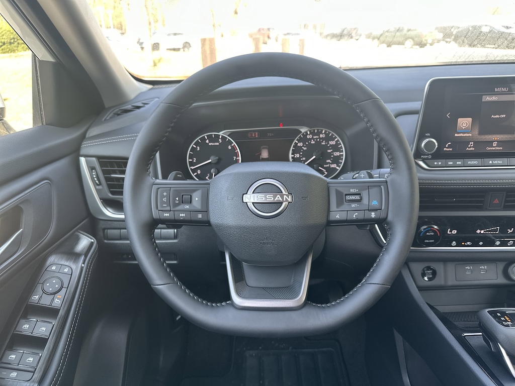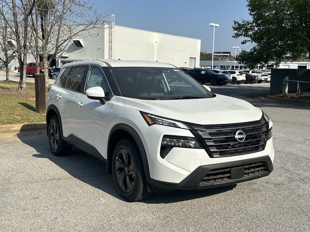 4-Wheel Disc Brakes, 6 Speakers, ABS brakes, Air Conditioning, Alloy wheels, AM/FM radio, Apple CarPlay/Android Auto, Auto High-beam Headlights, Automatic temperature control, Black Splash Guards (set of 4), Brake assist, Bumpers: body-color, Chrome Rear Bumper Protector, Cloth Seat Trim with Patterned Inserts, Cold Weather Package, Delay-off headlights, Driver door bin, Driver vanity mirror, Dual front impact airbags, Dual front side impact airbags, Electronic Stability Control, Emergency communication system: NissanConnect Services, First Aid Kit, Floor Mats with 1-Piece Cargo Area Protector, Four wheel independent suspension, Front anti-roll bar, Front Bucket Seats, Front Center Armrest, Front dual zone A/C, Front reading lights, Fully automatic headlights, Heated door mirrors, Heated Front Seats, Heated Steering Wheel, Illuminated entry, Knee airbag, Low tire pressure warning, Occupant sensing airbag, Outside temperature display, Overhead airbag, Overhead console, Panic alarm, Passenger door bin, Passenger vanity mirror, Power door mirrors, Power driver seat, Power Liftgate, Power steering, Power windows, Premium Paint, Radio data system, Radio: AM/FM NissanConnect, Rear anti-roll bar, Rear seat center armrest, Rear side impact airbag, Rear window defroster, Rear window wiper, Remote keyless entry, Speed control, Speed-sensing steering, Speed-Sensitive Wipers, Split folding rear seat, Spoiler, Steering wheel mounted audio controls, Tachometer, Telescoping steering wheel, Tilt steering wheel, Traction control, Trip computer, Variably intermittent wipers. New vehicle price includes all manufacturer and dealer incentives. Must finance with NMAC at standard rates to receive displayed price. Cash price may vary depending on NMAC and Dealer incentives. Not everyone qualifies for NMAC financing. Price in lieu of any special APR incentives cannot be combined with other offers unless specifically disclosed by the dealer. Prices do not include tax, tag, title or Georgia Lemon Law fees. Displayed prices include dealer doc fee and electronic filing fee. All pre-owned vehicles may also be subject to additional reconditioning and certification fees. White Pearl 2026 Nissan Rogue SV FWD 1.5L DOHC CVT with Xtronic