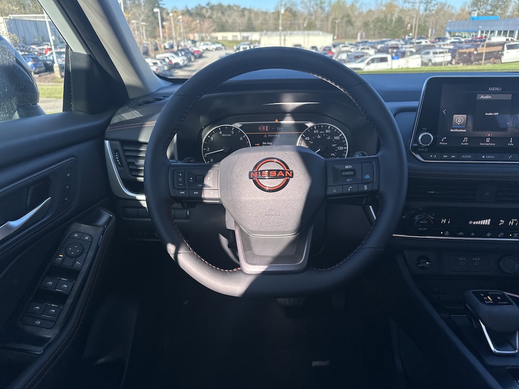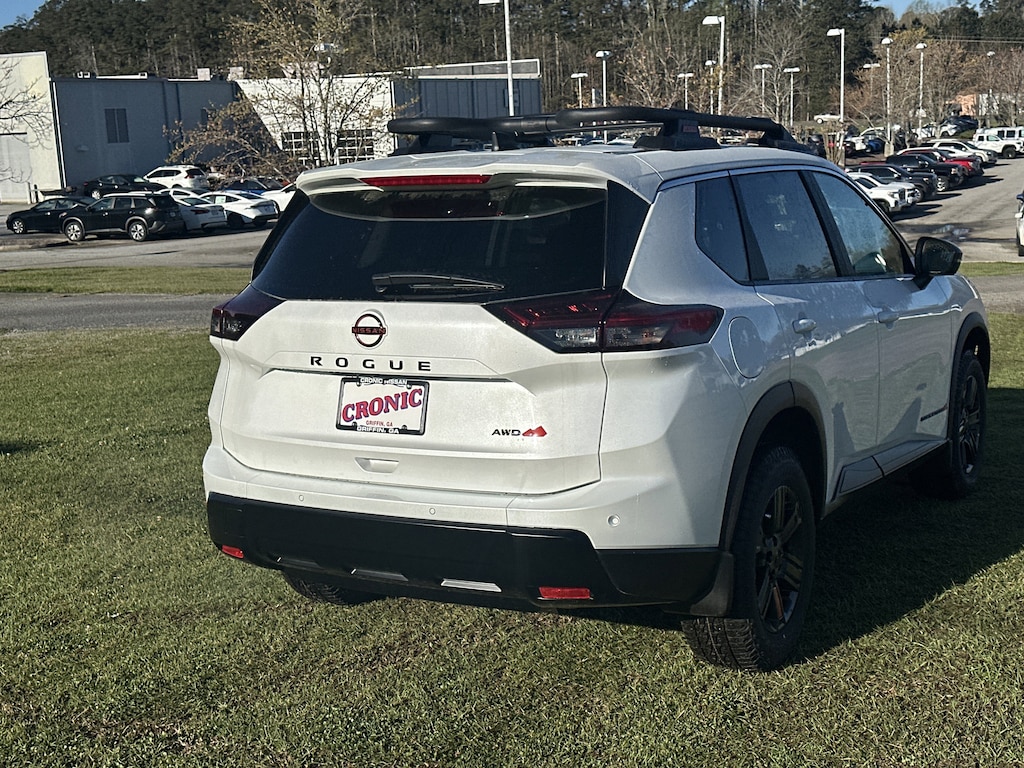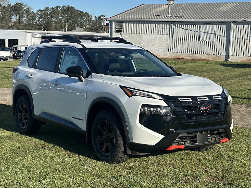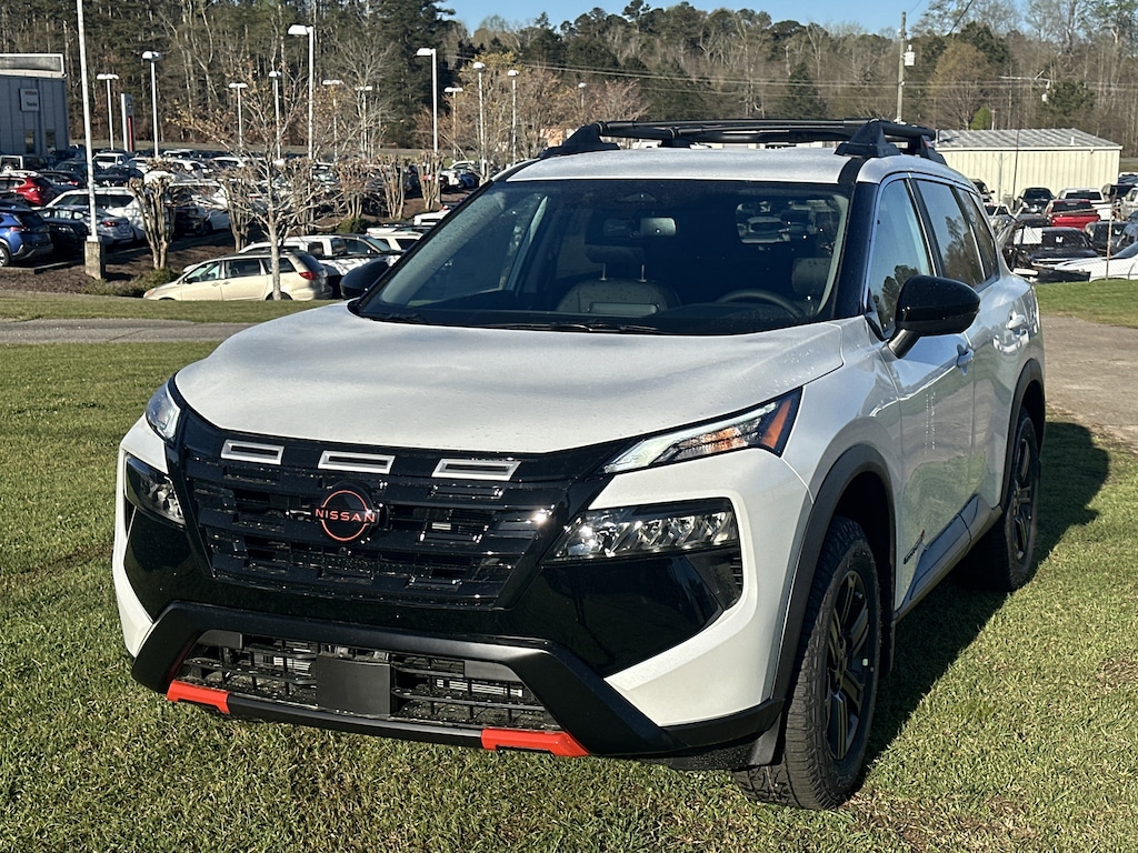 AWD, 4-Way Power Passenger Seat, 4-Wheel Disc Brakes, 6 Speakers, ABS brakes, Air Conditioning, Alloy wheels, AM/FM radio, Apple CarPlay/Android Auto, Auto High-beam Headlights, Auto-Dimming Inside Mirror, Automatic temperature control, Brake assist, Delay-off headlights, Driver door bin, Driver vanity mirror, Dual front impact airbags, Dual front side impact airbags, Electronic Stability Control, Emergency communication system: NissanConnect Services, Four wheel independent suspension, Front anti-roll bar, Front Bucket Seats, Front Center Armrest, Front dual zone A/C, Front reading lights, Fully automatic headlights, Heated door mirrors, Heated Front Bucket Seats, Heated front seats, Heated Steering Wheel, Illuminated entry, Interior LED Accent Lighting, Knee airbag, Leatherette and Ballistic Nylon Seating, Low tire pressure warning, Memory Driver Seat and Outside Mirrors, Motion-Activated Power Liftgate, Occupant sensing airbag, Outside temperature display, Overhead airbag, Overhead console, Panic alarm, Passenger door bin, Passenger vanity mirror, Power door mirrors, Power driver seat, Power Liftgate, Power steering, Power windows, Premium Paint, Radio data system, Radio: AM/FM NissanConnect, Rear anti-roll bar, Rear Parking Sensors, Rear seat center armrest, Rear side impact airbag, Rear window defroster, Rear window wiper, Remote keyless entry, Reverse Tilt-Down Outside Mirrors, Rock Creek Premium Package, Roof rack, Speed control, Speed-sensing steering, Speed-Sensitive Wipers, Split folding rear seat, Spoiler, Steering wheel mounted audio controls, Tachometer, Telescoping steering wheel, Tilt steering wheel, Traction control, Trip computer, Variably intermittent wipers, Wheels: 17" Dark Painted Alloy, Wireless Charging Pad, AWD. New vehicle price includes all manufacturer and dealer incentives. Must finance with NMAC at standard rates to receive displayed price. Cash price may vary depending on NMAC and Dealer incentives. Not everyone qualifies for NMAC financing. Price in lieu of any special APR incentives cannot be combined with other offers unless specifically disclosed by the dealer. Prices do not include tax, tag, title or Georgia Lemon Law fees. Displayed prices include dealer doc fee and electronic filing fee. All pre-owned vehicles may also be subject to additional reconditioning and certification fees. White Pearl 2026 Nissan Rogue Rock Creek AWD 1.5L DOHC CVT with Xtronic