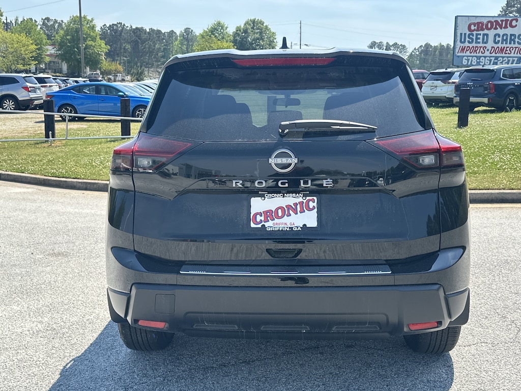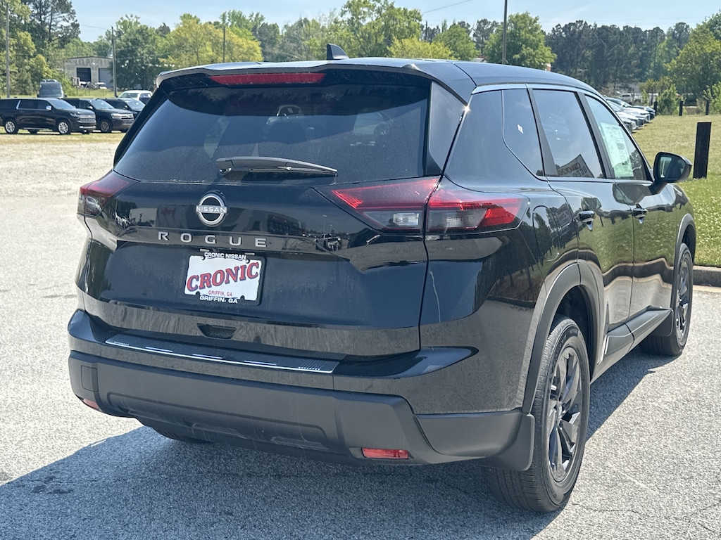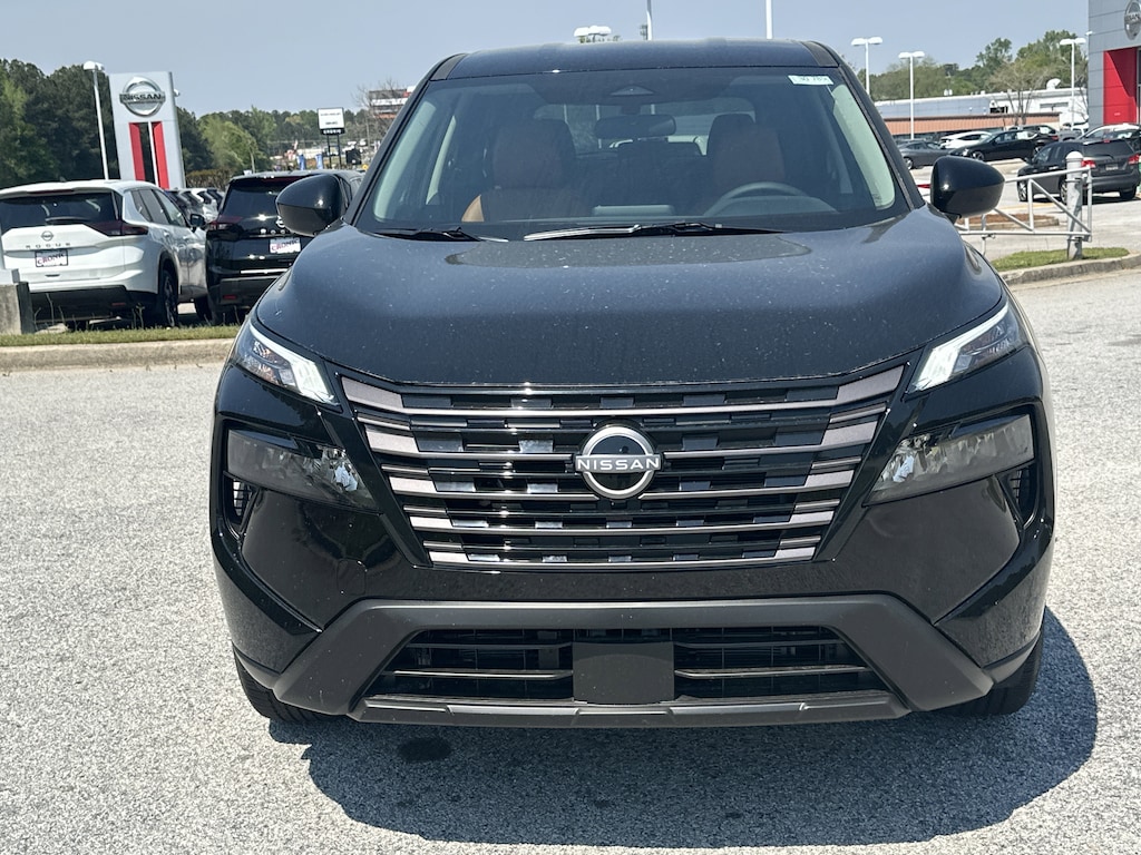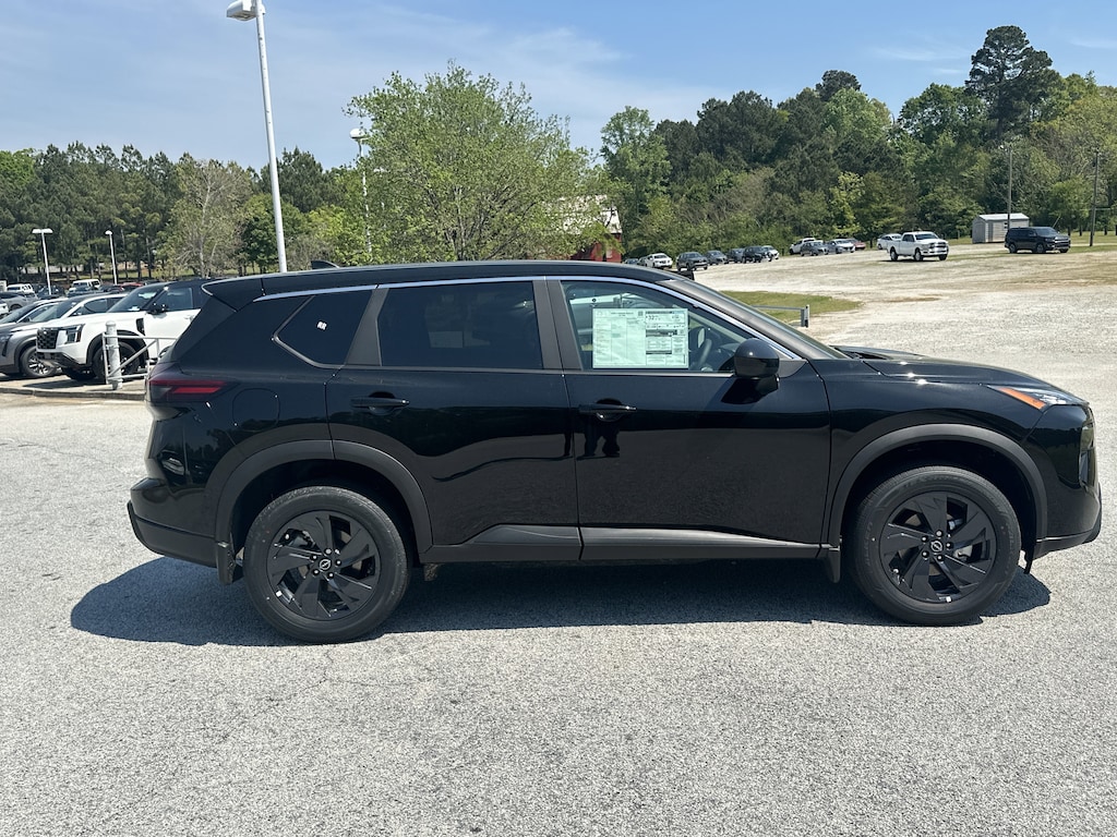 4-Wheel Disc Brakes, 6 Speakers, ABS brakes, Air Conditioning, Alloy wheels, AM/FM radio, Apple CarPlay/Android Auto, Auto High-beam Headlights, Automatic temperature control, Black Splash Guards (set of 4), Brake assist, Bumpers: body-color, Chrome Rear Bumper Protector, Cloth Seat Trim with Patterned Inserts, Delay-off headlights, Driver door bin, Driver vanity mirror, Dual front impact airbags, Dual front side impact airbags, Electronic Stability Control, Emergency communication system: NissanConnect Services, First Aid Kit, Floor Mats with 1-Piece Cargo Area Protector, Four wheel independent suspension, Front anti-roll bar, Front Bucket Seats, Front Center Armrest, Front dual zone A/C, Front reading lights, Fully automatic headlights, Heated door mirrors, Illuminated entry, Knee airbag, Low tire pressure warning, Occupant sensing airbag, Outside temperature display, Overhead airbag, Overhead console, Panic alarm, Passenger door bin, Passenger vanity mirror, Power door mirrors, Power driver seat, Power Liftgate, Power steering, Power windows, Radio data system, Radio: AM/FM NissanConnect, Rear anti-roll bar, Rear seat center armrest, Rear side impact airbag, Rear window defroster, Rear window wiper, Remote keyless entry, Speed control, Speed-sensing steering, Speed-Sensitive Wipers, Split folding rear seat, Spoiler, Steering wheel mounted audio controls, Tachometer, Telescoping steering wheel, Tilt steering wheel, Traction control, Trip computer, Variably intermittent wipers. New vehicle price includes all manufacturer and dealer incentives. Must finance with NMAC at standard rates to receive displayed price. Cash price may vary depending on NMAC and Dealer incentives. Not everyone qualifies for NMAC financing. Price in lieu of any special APR incentives cannot be combined with other offers unless specifically disclosed by the dealer. Prices do not include tax, tag, title or Georgia Lemon Law fees. Displayed prices include dealer doc fee and electronic filing fee. All pre-owned vehicles may also be subject to additional reconditioning and certification fees. Super Black 2026 Nissan Rogue SV FWD 1.5L DOHC CVT with Xtronic