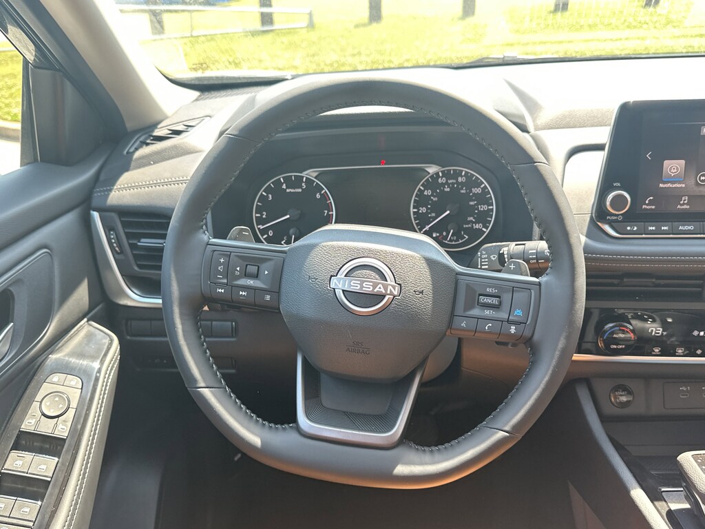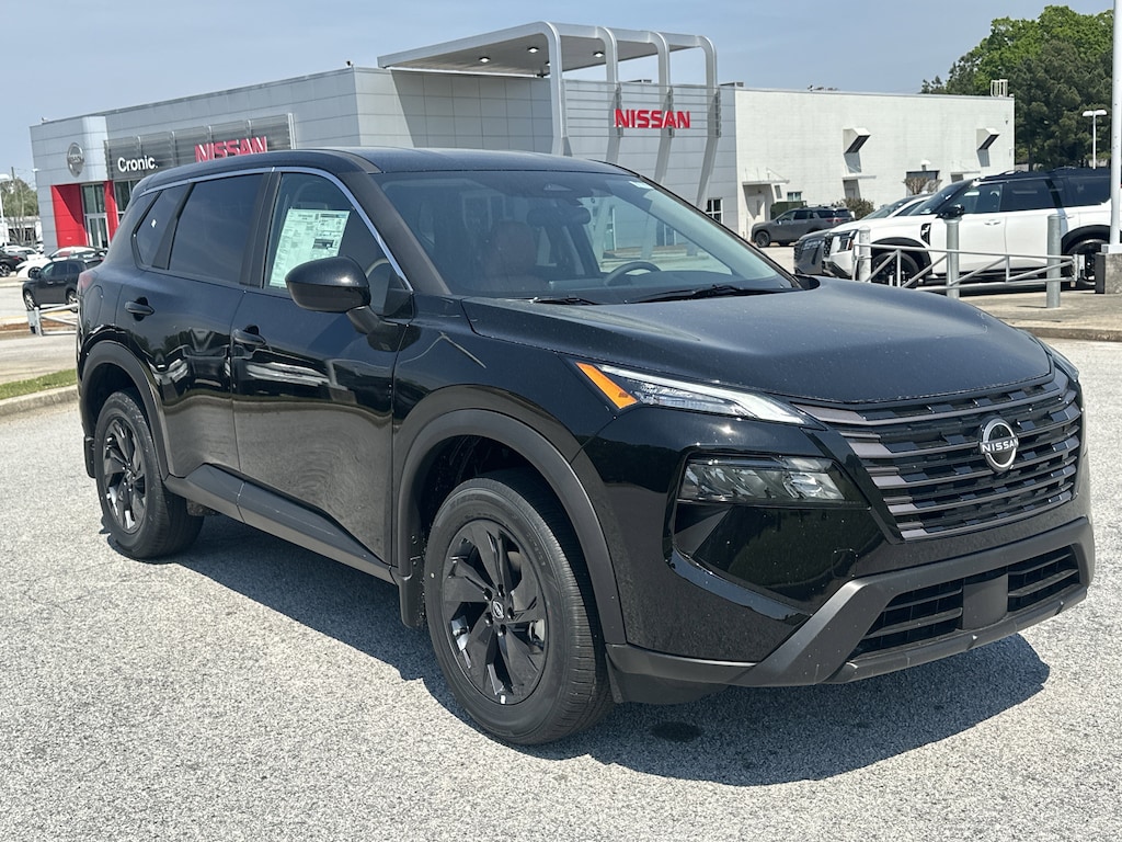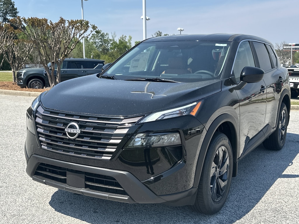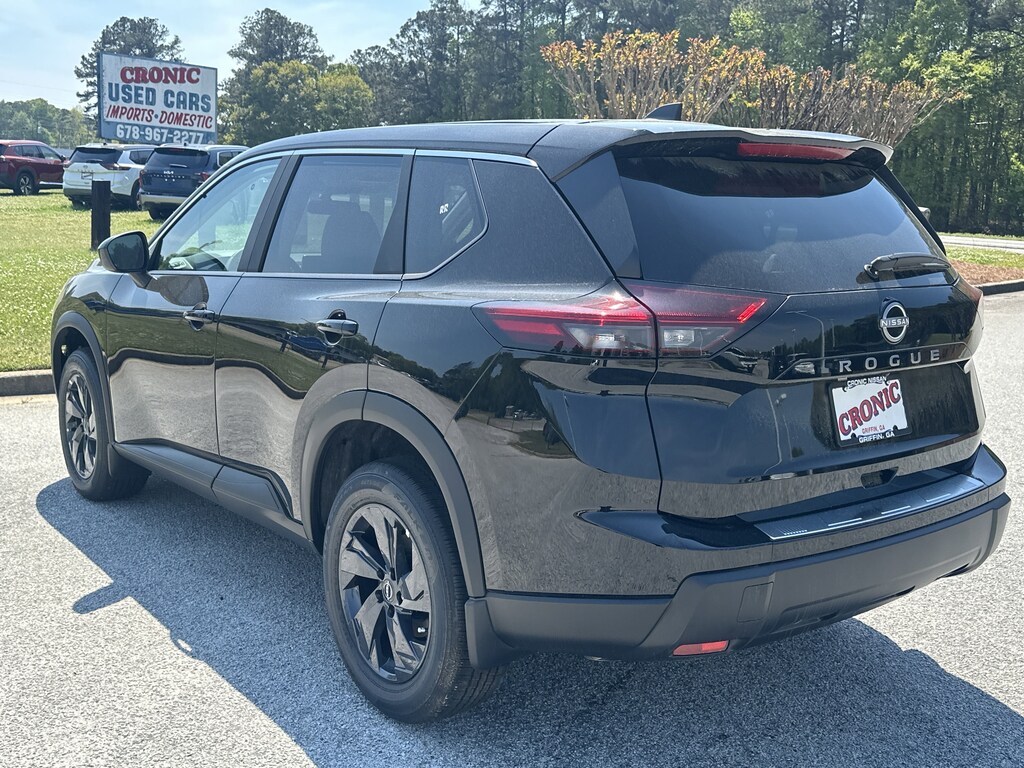 4-Wheel Disc Brakes, 6 Speakers, ABS brakes, Air Conditioning, Alloy wheels, AM/FM radio, Apple CarPlay/Android Auto, Auto High-beam Headlights, Automatic temperature control, Black Splash Guards (set of 4), Brake assist, Bumpers: body-color, Chrome Rear Bumper Protector, Cloth Seat Trim with Patterned Inserts, Delay-off headlights, Driver door bin, Driver vanity mirror, Dual front impact airbags, Dual front side impact airbags, Electronic Stability Control, Emergency communication system: NissanConnect Services, First Aid Kit, Floor Mats with 1-Piece Cargo Area Protector, Four wheel independent suspension, Front anti-roll bar, Front Bucket Seats, Front Center Armrest, Front dual zone A/C, Front reading lights, Fully automatic headlights, Heated door mirrors, Illuminated entry, Knee airbag, Low tire pressure warning, Occupant sensing airbag, Outside temperature display, Overhead airbag, Overhead console, Panic alarm, Passenger door bin, Passenger vanity mirror, Power door mirrors, Power driver seat, Power Liftgate, Power steering, Power windows, Radio data system, Radio: AM/FM NissanConnect, Rear anti-roll bar, Rear seat center armrest, Rear side impact airbag, Rear window defroster, Rear window wiper, Remote keyless entry, Speed control, Speed-sensing steering, Speed-Sensitive Wipers, Split folding rear seat, Spoiler, Steering wheel mounted audio controls, Tachometer, Telescoping steering wheel, Tilt steering wheel, Traction control, Trip computer, Variably intermittent wipers. New vehicle price includes all manufacturer and dealer incentives. Must finance with NMAC at standard rates to receive displayed price. Cash price may vary depending on NMAC and Dealer incentives. Not everyone qualifies for NMAC financing. Price in lieu of any special APR incentives cannot be combined with other offers unless specifically disclosed by the dealer. Prices do not include tax, tag, title or Georgia Lemon Law fees. Displayed prices include dealer doc fee and electronic filing fee. All pre-owned vehicles may also be subject to additional reconditioning and certification fees. Super Black 2026 Nissan Rogue SV FWD 1.5L DOHC CVT with Xtronic
