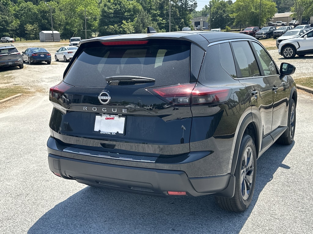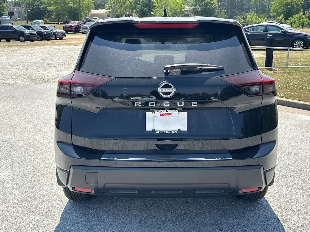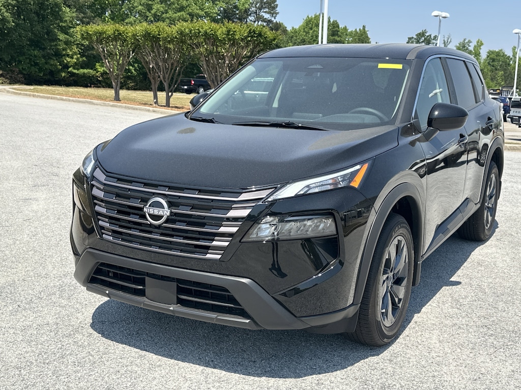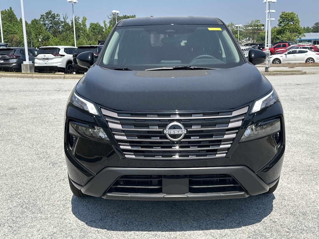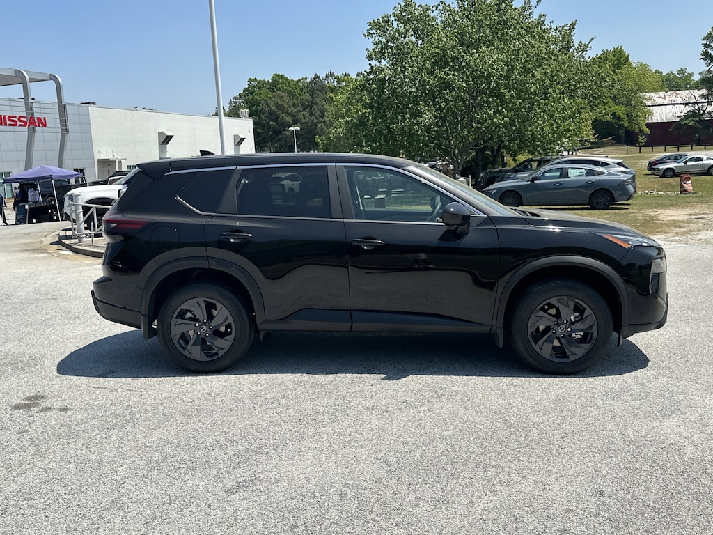 4-Wheel Disc Brakes, 6 Speakers, ABS brakes, Air Conditioning, Alloy wheels, AM/FM radio, Apple CarPlay/Android Auto, Auto High-beam Headlights, Automatic temperature control, Black Splash Guards (set of 4), Brake assist, Bumpers: body-color, Chrome Rear Bumper Protector, Cloth Seat Trim with Patterned Inserts, Delay-off headlights, Driver door bin, Driver vanity mirror, Dual front impact airbags, Dual front side impact airbags, Electronic Stability Control, Emergency communication system: NissanConnect Services, First Aid Kit, Floor Mats with 1-Piece Cargo Area Protector, Four wheel independent suspension, Front anti-roll bar, Front Bucket Seats, Front Center Armrest, Front dual zone A/C, Front reading lights, Fully automatic headlights, Heated door mirrors, Illuminated entry, Knee airbag, Low tire pressure warning, Occupant sensing airbag, Outside temperature display, Overhead airbag, Overhead console, Panic alarm, Passenger door bin, Passenger vanity mirror, Power door mirrors, Power driver seat, Power Liftgate, Power steering, Power windows, Radio data system, Radio: AM/FM NissanConnect, Rear anti-roll bar, Rear seat center armrest, Rear side impact airbag, Rear window defroster, Rear window wiper, Remote keyless entry, Speed control, Speed-sensing steering, Speed-Sensitive Wipers, Split folding rear seat, Spoiler, Steering wheel mounted audio controls, Tachometer, Telescoping steering wheel, Tilt steering wheel, Traction control, Trip computer, Variably intermittent wipers. New vehicle price includes all manufacturer and dealer incentives. Must finance with NMAC at standard rates to receive displayed price. Cash price may vary depending on NMAC and Dealer incentives. Not everyone qualifies for NMAC financing. Price in lieu of any special APR incentives cannot be combined with other offers unless specifically disclosed by the dealer. Prices do not include tax, tag, title or Georgia Lemon Law fees. Displayed prices include dealer doc fee and electronic filing fee. All pre-owned vehicles may also be subject to additional reconditioning and certification fees. Super Black 2026 Nissan Rogue SV FWD 1.5L DOHC CVT with Xtronic