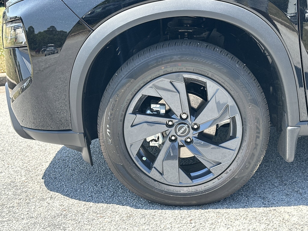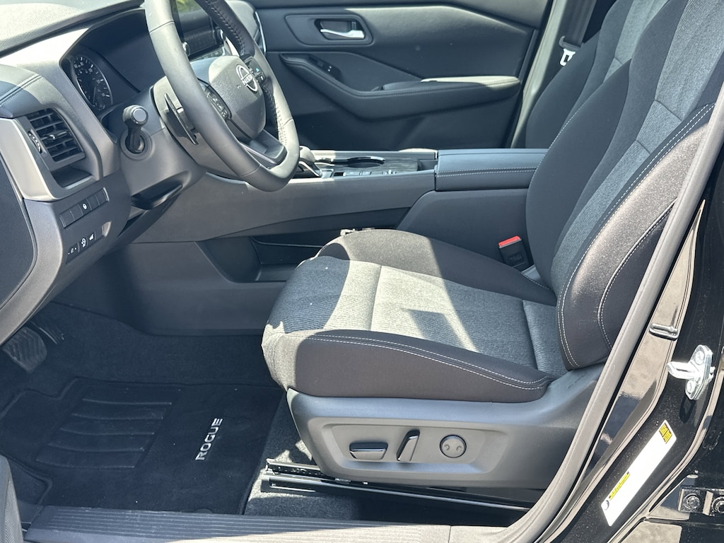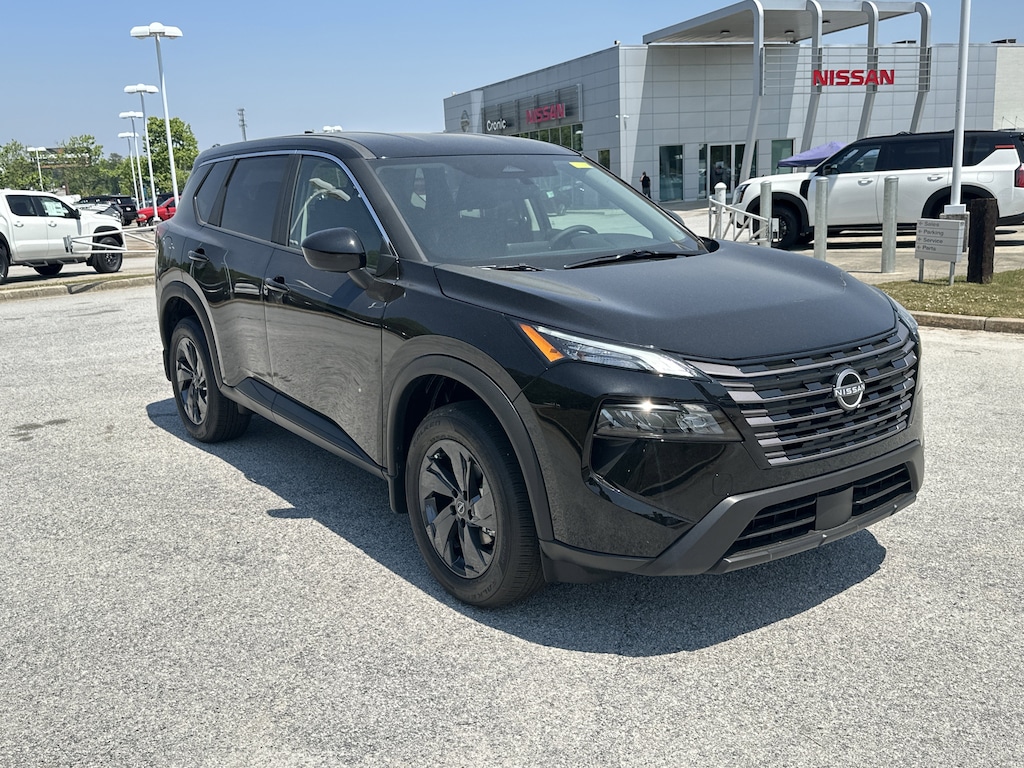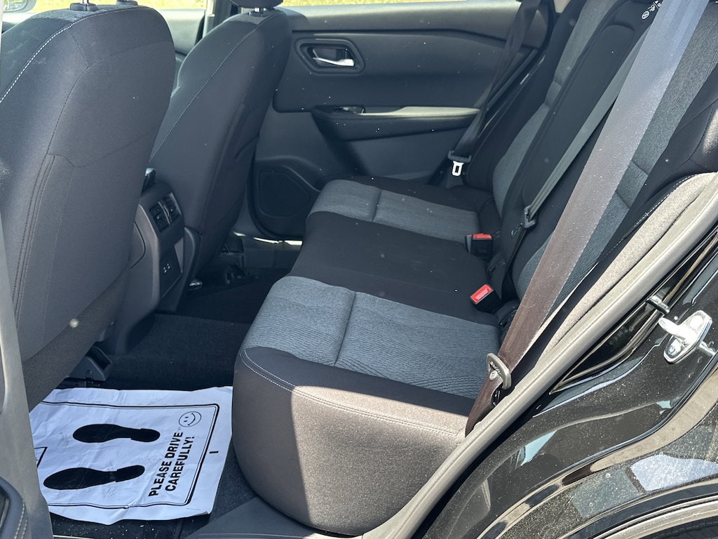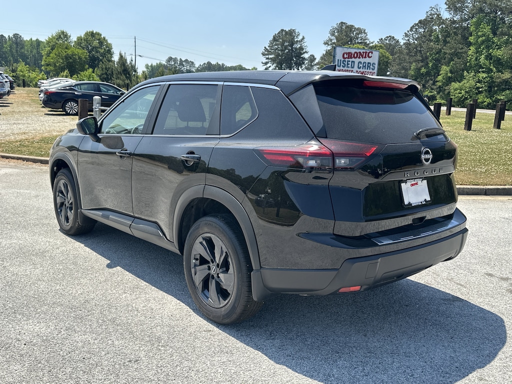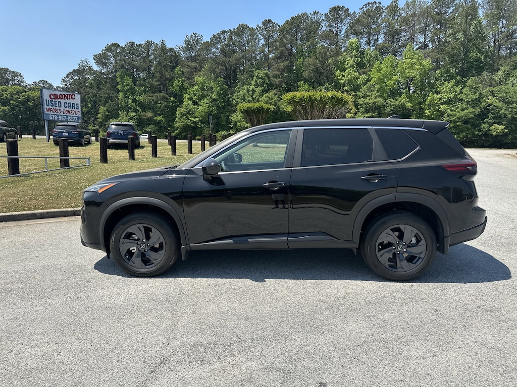 4-Wheel Disc Brakes, 6 Speakers, ABS brakes, Air Conditioning, Alloy wheels, AM/FM radio, Apple CarPlay/Android Auto, Auto High-beam Headlights, Automatic temperature control, Black Splash Guards (set of 4), Brake assist, Bumpers: body-color, Chrome Rear Bumper Protector, Cloth Seat Trim with Patterned Inserts, Delay-off headlights, Driver door bin, Driver vanity mirror, Dual front impact airbags, Dual front side impact airbags, Electronic Stability Control, Emergency communication system: NissanConnect Services, First Aid Kit, Floor Mats with 1-Piece Cargo Area Protector, Four wheel independent suspension, Front anti-roll bar, Front Bucket Seats, Front Center Armrest, Front dual zone A/C, Front reading lights, Fully automatic headlights, Heated door mirrors, Illuminated entry, Knee airbag, Low tire pressure warning, Occupant sensing airbag, Outside temperature display, Overhead airbag, Overhead console, Panic alarm, Passenger door bin, Passenger vanity mirror, Power door mirrors, Power driver seat, Power Liftgate, Power steering, Power windows, Radio data system, Radio: AM/FM NissanConnect, Rear anti-roll bar, Rear seat center armrest, Rear side impact airbag, Rear window defroster, Rear window wiper, Remote keyless entry, Speed control, Speed-sensing steering, Speed-Sensitive Wipers, Split folding rear seat, Spoiler, Steering wheel mounted audio controls, Tachometer, Telescoping steering wheel, Tilt steering wheel, Traction control, Trip computer, Variably intermittent wipers. New vehicle price includes all manufacturer and dealer incentives. Must finance with NMAC at standard rates to receive displayed price. Cash price may vary depending on NMAC and Dealer incentives. Not everyone qualifies for NMAC financing. Price in lieu of any special APR incentives cannot be combined with other offers unless specifically disclosed by the dealer. Prices do not include tax, tag, title or Georgia Lemon Law fees. Displayed prices include dealer doc fee and electronic filing fee. All pre-owned vehicles may also be subject to additional reconditioning and certification fees. Super Black 2026 Nissan Rogue SV FWD 1.5L DOHC CVT with Xtronic