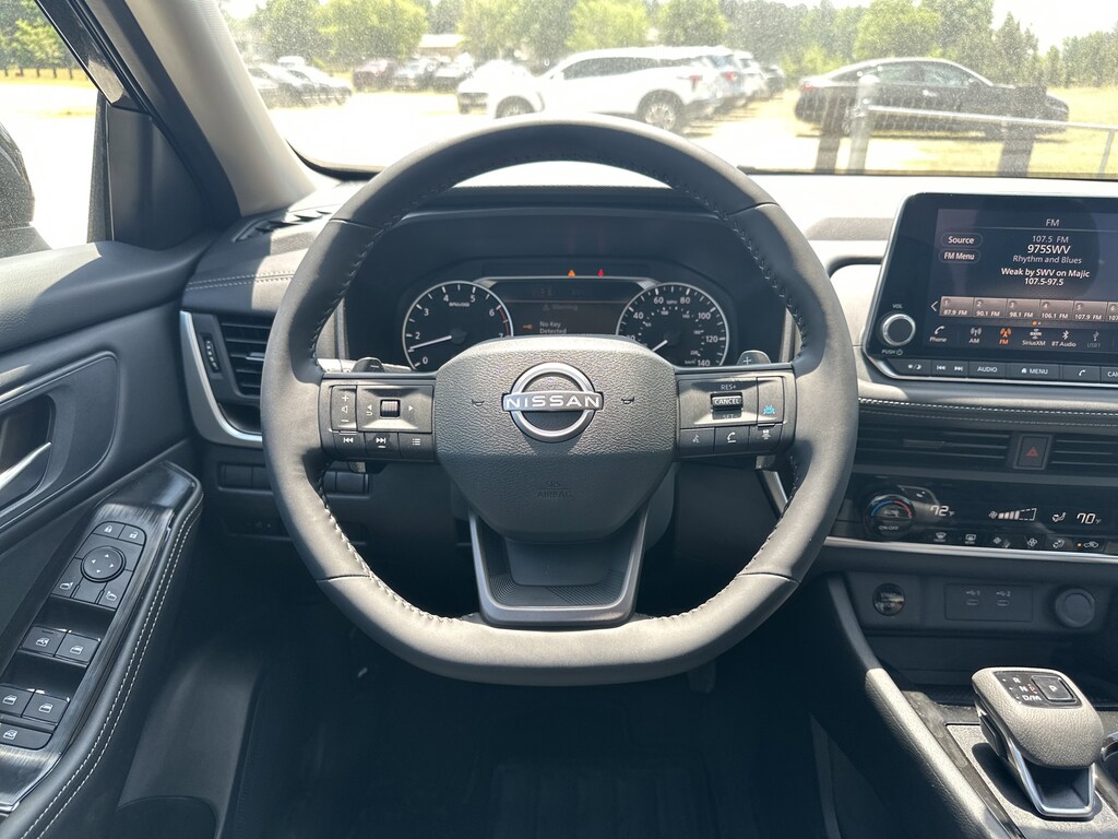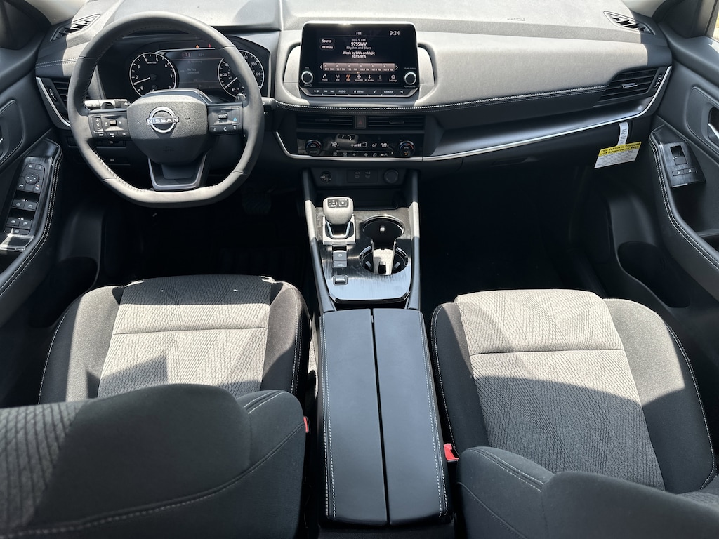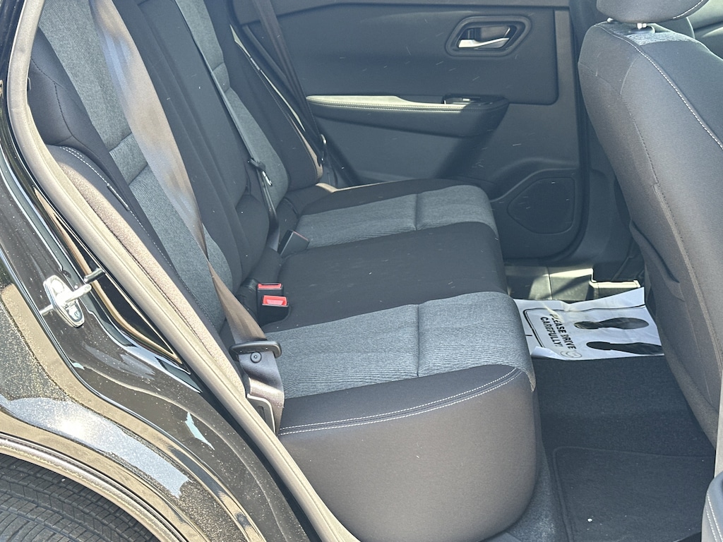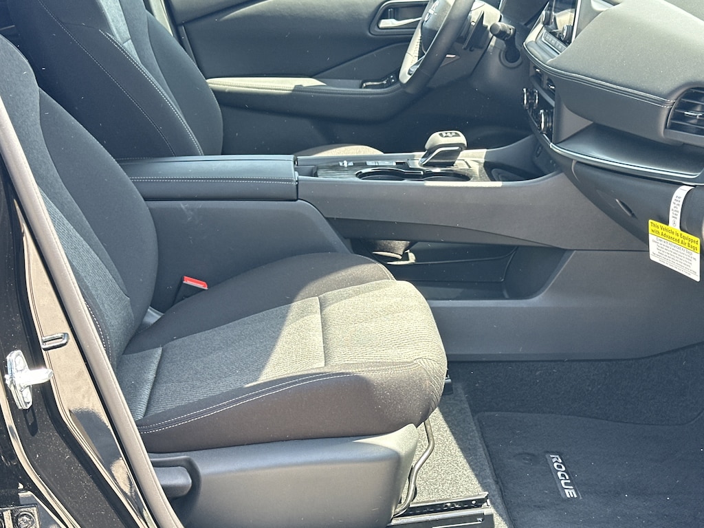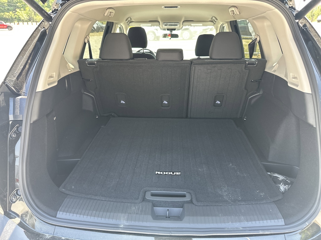 4-Wheel Disc Brakes, 6 Speakers, ABS brakes, Air Conditioning, Alloy wheels, AM/FM radio, Apple CarPlay/Android Auto, Auto High-beam Headlights, Automatic temperature control, Black Splash Guards (set of 4), Brake assist, Bumpers: body-color, Chrome Rear Bumper Protector, Cloth Seat Trim with Patterned Inserts, Delay-off headlights, Driver door bin, Driver vanity mirror, Dual front impact airbags, Dual front side impact airbags, Electronic Stability Control, Emergency communication system: NissanConnect Services, First Aid Kit, Floor Mats with 1-Piece Cargo Area Protector, Four wheel independent suspension, Front anti-roll bar, Front Bucket Seats, Front Center Armrest, Front dual zone A/C, Front reading lights, Fully automatic headlights, Heated door mirrors, Illuminated entry, Knee airbag, Low tire pressure warning, Occupant sensing airbag, Outside temperature display, Overhead airbag, Overhead console, Panic alarm, Passenger door bin, Passenger vanity mirror, Power door mirrors, Power driver seat, Power Liftgate, Power steering, Power windows, Radio data system, Radio: AM/FM NissanConnect, Rear anti-roll bar, Rear seat center armrest, Rear side impact airbag, Rear window defroster, Rear window wiper, Remote keyless entry, Speed control, Speed-sensing steering, Speed-Sensitive Wipers, Split folding rear seat, Spoiler, Steering wheel mounted audio controls, Tachometer, Telescoping steering wheel, Tilt steering wheel, Traction control, Trip computer, Variably intermittent wipers. New vehicle price includes all manufacturer and dealer incentives. Must finance with NMAC at standard rates to receive displayed price. Cash price may vary depending on NMAC and Dealer incentives. Not everyone qualifies for NMAC financing. Price in lieu of any special APR incentives cannot be combined with other offers unless specifically disclosed by the dealer. Prices do not include tax, tag, title or Georgia Lemon Law fees. Displayed prices include dealer doc fee and electronic filing fee. All pre-owned vehicles may also be subject to additional reconditioning and certification fees. Super Black 2026 Nissan Rogue SV FWD 1.5L DOHC CVT with Xtronic