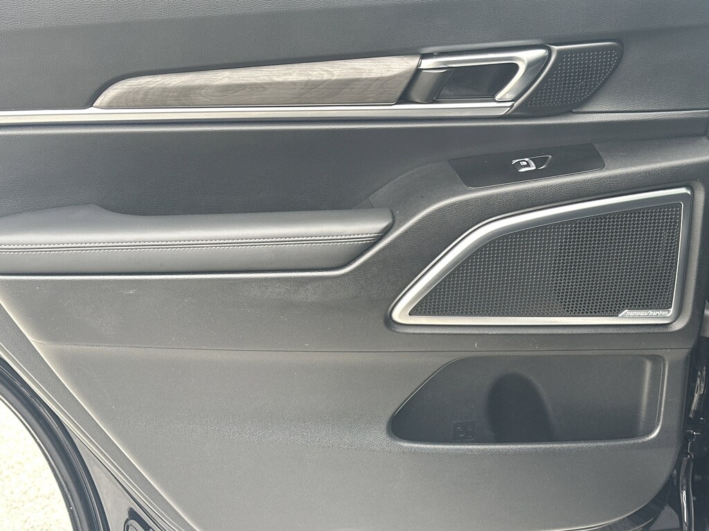 10 Speakers, 3.648 Axle Ratio, 3rd row seats: split-bench, 4-Wheel Disc Brakes, ABS brakes, Air Conditioning, Alloy wheels, AM/FM radio: SiriusXM, Apple CarPlay & Android Auto, Auto High-beam Headlights, Auto-dimming Rear-View mirror, Auto-leveling suspension, Automatic temperature control, Brake assist, Bumpers: body-color, Carpet Floor Mats, Compass, Delay-off headlights, Driver door bin, Driver vanity mirror, Dual front impact airbags, Dual front side impact airbags, Electronic Stability Control, Emergency communication system: 911 Connect, Exterior Parking Camera Rear, Four wheel independent suspension, Front anti-roll bar, Front Bucket Seats, Front Center Armrest, Front dual zone A/C, Front fog lights, Front reading lights, Fully automatic headlights, Garage door transmitter: HomeLink, harman/kardon® Speakers, Heated & Ventilated Front Bucket Seats, Heated door mirrors, Heated front seats, Heated steering wheel, Illuminated entry, Knee airbag, Leather Seat Trim, Leather Shift Knob, Leather steering wheel, Low tire pressure warning, Memory seat, Navigation System, Occupant sensing airbag, Outside temperature display, Overhead airbag, Overhead console, Panic alarm, Passenger door bin, Passenger vanity mirror, Power door mirrors, Power driver seat, Power Liftgate, Power moonroof, Power passenger seat, Power steering, Power windows, Radio data system, Radio: AM/FM Harman Kardon Audio System, Rear air conditioning, Rear anti-roll bar, Rear audio controls, Rear reading lights, Rear side impact airbag, Rear window defroster, Rear window wiper, Reclining 3rd row seat, Remote keyless entry, Roof rack: rails only, Security system, Smart Key w/ Push Button and Remote Start, Speed control, Speed-sensing steering, Split folding rear seat, Spoiler, Steering wheel mounted audio controls, Tachometer, Telescoping steering wheel, Tilt steering wheel, Traction control, Trip computer, Turn signal indicator mirrors, Variably intermittent wipers, Ventilated front seats, Wheels: 20" x 7.5" Black Finish X-LINE Exclusive. Clean CARFAX. CARFAX One-Owner.
