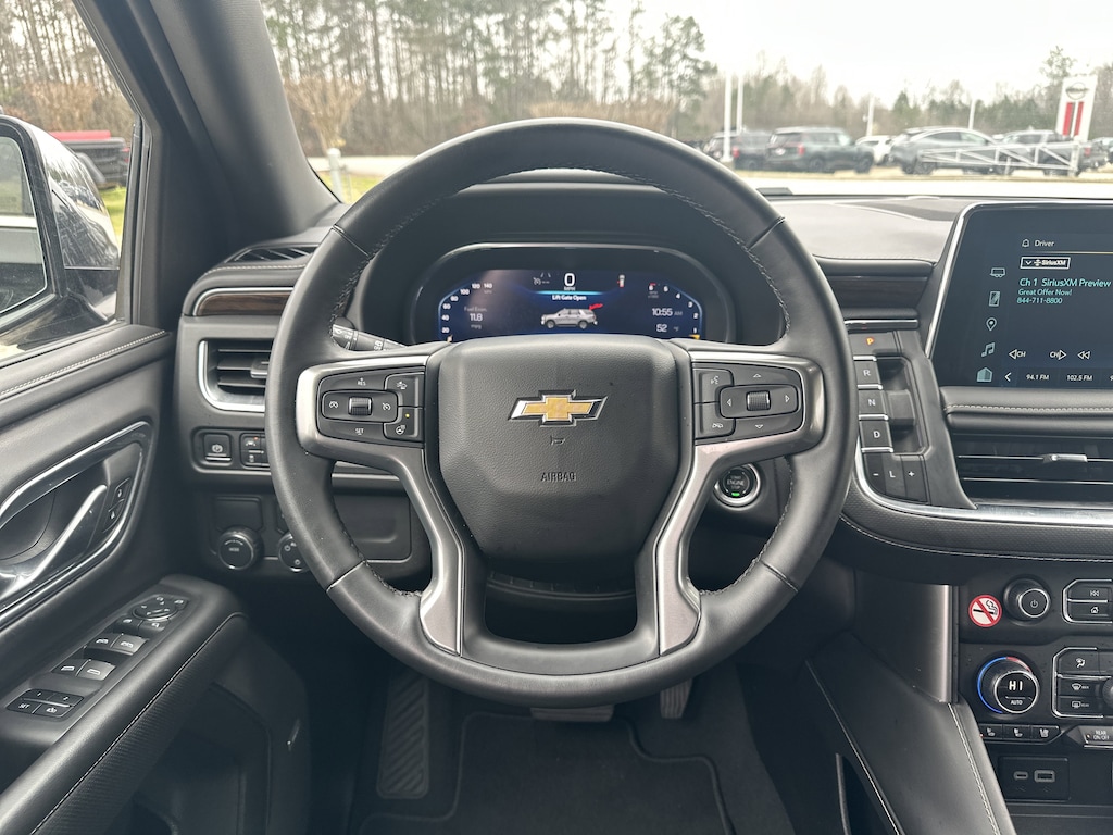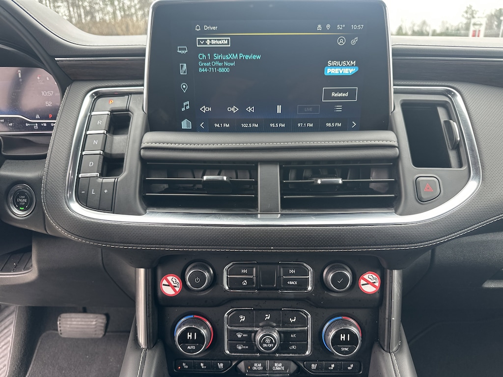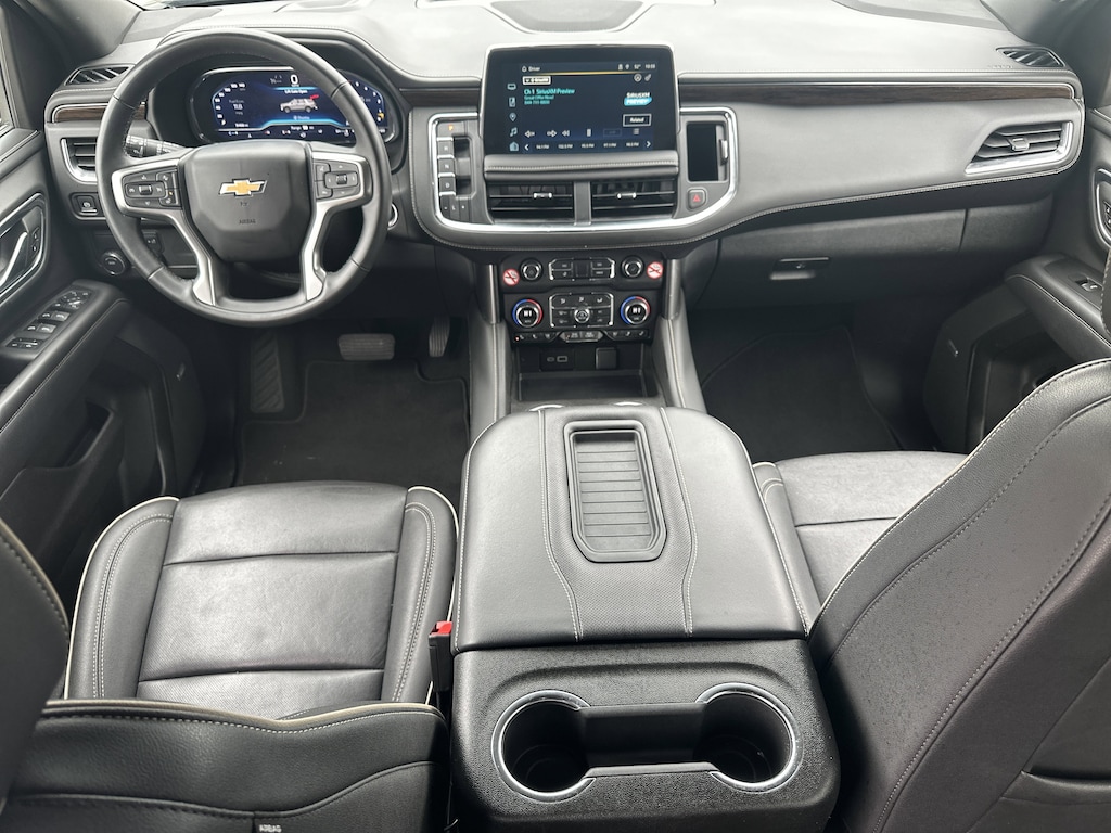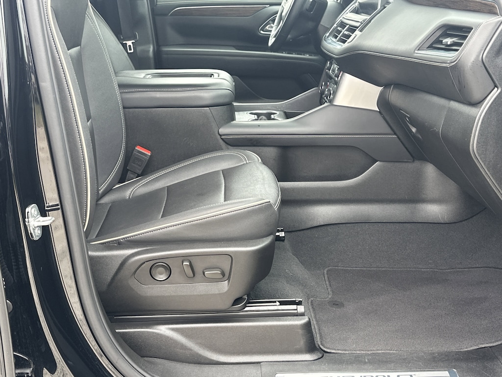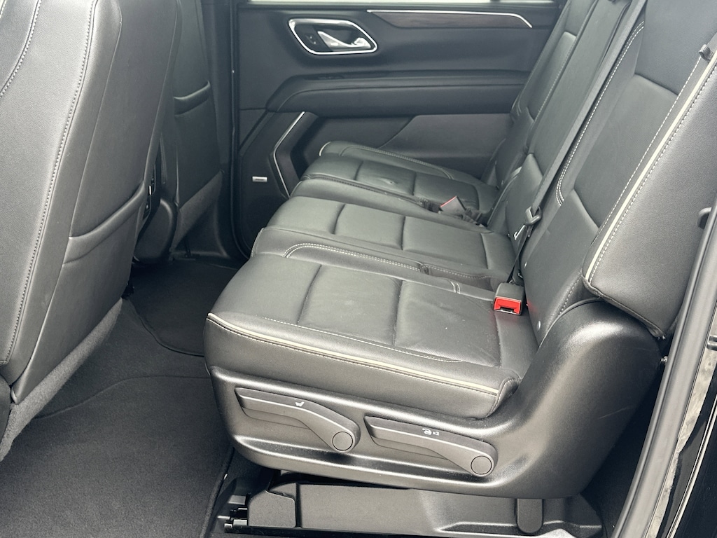 10 Speakers, 12-Way Power Driver & Passenger Seat Adjusters, 1st & 2nd Row Color-Keyed Carpeted Floor Mats, 20" x 9" Polished Aluminum Wheels, 2nd Row Pwr Release 60/40 Split-Folding Bench Seat, 3.23 Rear Axle Ratio, 3rd Row 60/40 Power-Folding Split-Bench, 3rd row seats: split-bench, 4-Wheel Disc Brakes, ABS brakes, Adaptive suspension, Air Conditioning, Alloy wheels, AM/FM radio: SiriusXM with 360L, Apple CarPlay/Android Auto, Auto High-beam Headlights, Auto-dimming door mirrors, Auto-Dimming Inside Rear-View Mirror, Auto-dimming Rear-View mirror, Auto-leveling suspension, Automatic temperature control, Bose 10-Speaker Surround w/CenterPoint, Brake assist, Bright Front & Rear Door Sill Plates, Bumpers: body-color, Chrome Door Handles w/Body-Color Strip, Chrome Mirror Caps, Color-Keyed Carpeting Floor Covering, Compass, Delay-off headlights, Deleted 3 Years of Remote Access, Driver & Front Outboard Passenger Airbags, Driver door bin, Driver vanity mirror, Dual Exhaust System, Dual front impact airbags, Dual front side impact airbags, Electronic Stability Control, Emergency communication system: OnStar and Chevrolet connected services capable, Enhanced Driver Information Center, Floor Console, Floor Console w/Storage Area, Four wheel independent suspension, Front anti-roll bar, Front Bucket Seats, Front Center Armrest, Front dual zone A/C, Front reading lights, Fully automatic headlights, Garage door transmitter, Hands-Free Rear Power Programmable Liftgate, Heated 2nd Row Outboard Seats, Heated door mirrors, Heated Driver & Front Passenger Seats, Heated front seats, Heated rear seats, Heated Steering Wheel, Heated steering wheel, Illuminated entry, Infotainment Display, Lane Change Alert w/Side Blind Zone Alert, LED Daytime Running Lamps, Low tire pressure warning, Magnetic Ride Control Suspension, Memory seat, Memory Settings, Navigation System, Occupant sensing airbag, Outside Heated Power-Adjustable Mirrors, Outside temperature display, Overhead airbag, Overhead console, Panic alarm, Passenger door bin, Passenger vanity mirror, Perforated Heated & Ventilated Seats, Perforated Leather Seating Surfaces, Power door mirrors, Power driver seat, Power Liftgate, Power passenger seat, Power Release 2nd Row Bucket Seats, Power steering, Power Tilt & Telescopic Steering Column, Power windows, Preferred Equipment Group 1LZ, Premium audio system: Chevrolet Infotainment 3 Premium, Radio: Chevrolet Infotainment 3 Premium System, Rain sensing wipers, Rear air conditioning, Rear anti-roll bar, Rear Cross Traffic Alert, Rear reading lights, Rear window defroster, Rear window wiper, Remote keyless entry, Remote Start, Roof rack: xxxxxx, Safety Alert Seat, Security system, SiriusXM w/360L, Speed control, Speed-sensing steering, Split folding rear seat, Spoiler, Steering wheel memory, Steering wheel mounted audio controls, Tachometer, Telescoping steering wheel, Tilt steering wheel, Traction control, Trip computer, Turn signal indicator mirrors, Universal Home Remote, Variably intermittent wipers, Ventilated front seats, Voltmeter, Wireless Charging, Wrapped Steering Wheel. Clean CARFAX. CARFAX One-Owner.