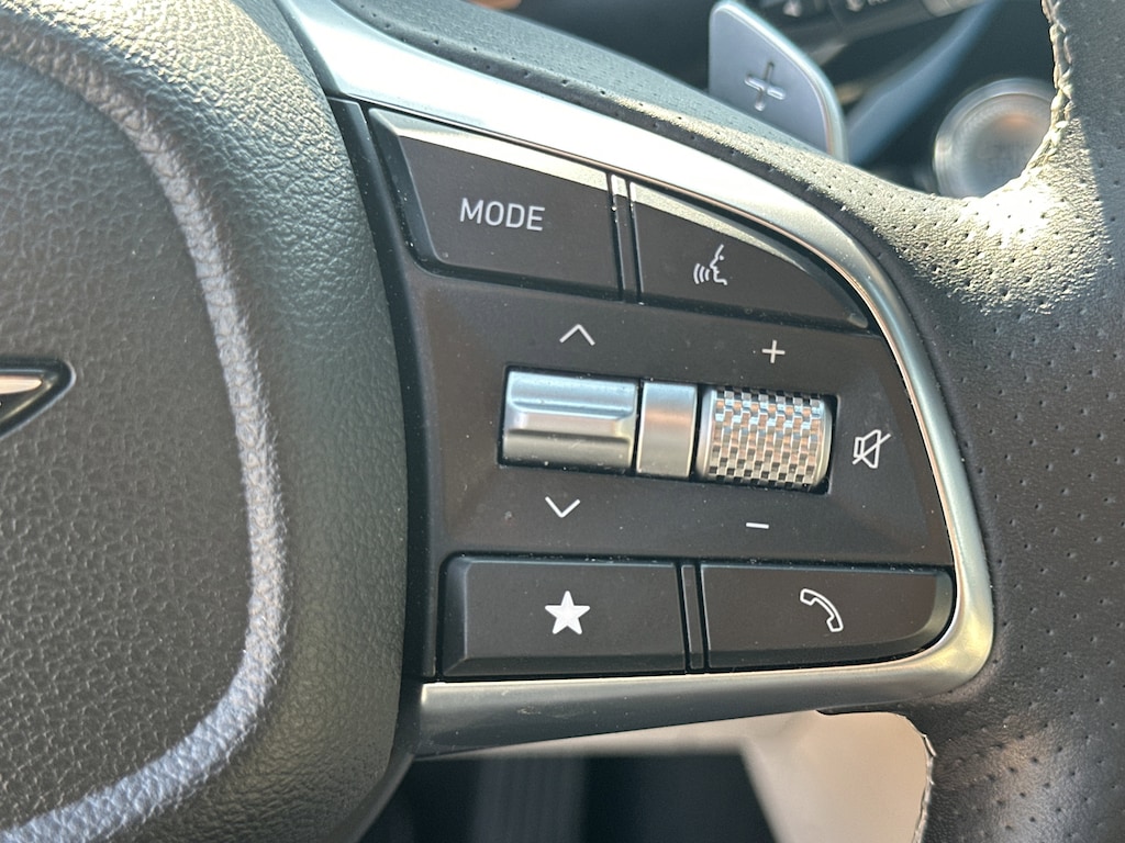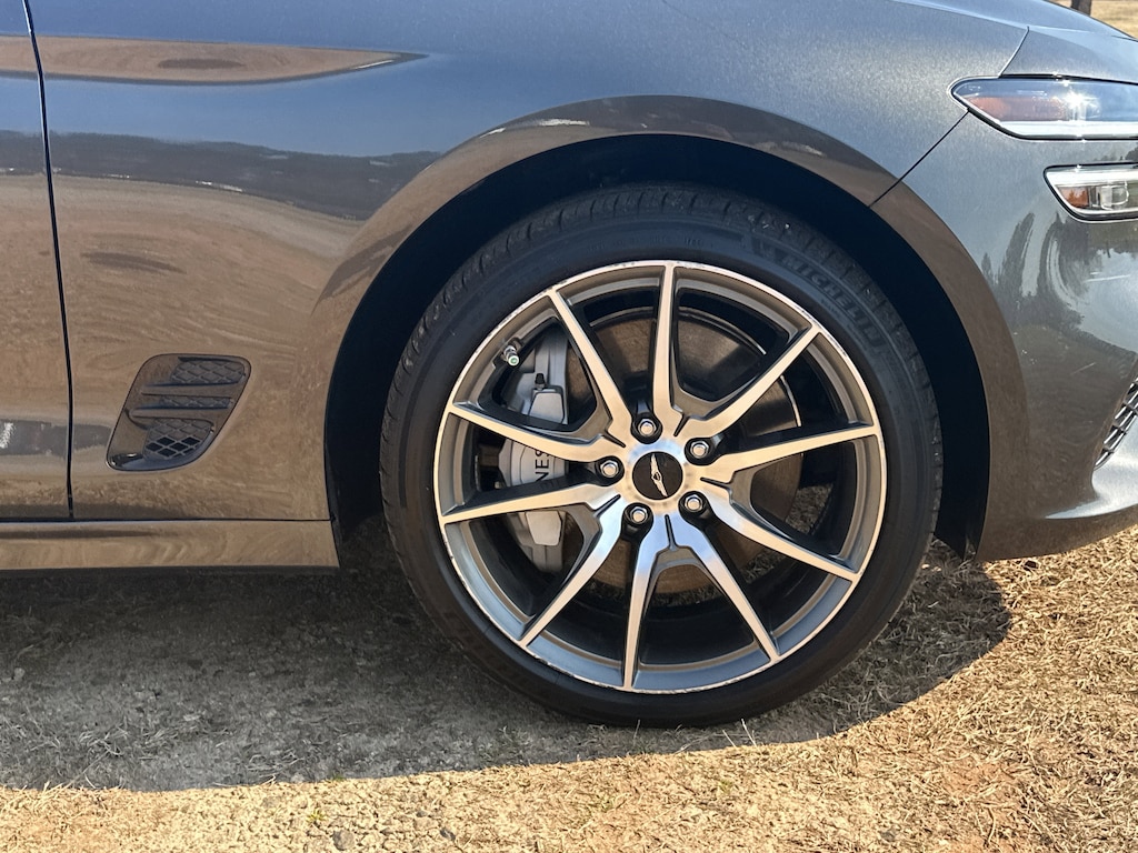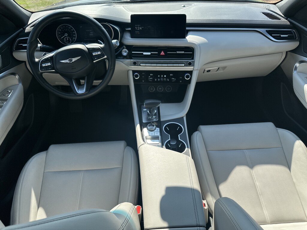 4-Wheel Disc Brakes, 6 Speakers, ABS brakes, Air Conditioning, Alloy wheels, AM/FM radio: SiriusXM, Android Auto & Apple CarPlay, Anti-whiplash front head restraints, Auto High-beam Headlights, Auto-dimming Rear-View mirror, Automatic temperature control, Brake assist, Bumpers: body-color, Delay-off headlights, Driver door bin, Driver vanity mirror, Dual front impact airbags, Dual front side impact airbags, Electronic Stability Control, Emergency communication system: Genesis Connected Services, Exterior Parking Camera Rear, Four wheel independent suspension, Front anti-roll bar, Front Bucket Seats, Front Center Armrest, Front dual zone A/C, Front reading lights, Fully automatic headlights, Garage door transmitter: HomeLink, Heated door mirrors, Heated front seats, Heated Multi-Adjustable Front Bucket Seats, Illuminated entry, Knee airbag, Leather steering wheel, Leatherette Seating Surfaces, Low tire pressure warning, Navigation System, Occupant sensing airbag, Outside temperature display, Overhead airbag, Overhead console, Panic alarm, Passenger door bin, Passenger vanity mirror, Power door mirrors, Power driver seat, Power passenger seat, Power steering, Power windows, Radio: AM/FM/SiriusXM/HD Audio System, Rear anti-roll bar, Rear reading lights, Rear seat center armrest, Rear side impact airbag, Rear window defroster, Remote keyless entry, Security system, Speed control, Speed-Sensitive Wipers, Split folding rear seat, Steering wheel mounted audio controls, Tachometer, Telescoping steering wheel, Traction control, Trip computer, Turn signal indicator mirrors, Variably intermittent wipers, Wheels: 19" x 8.0J Fr & 19" x 8.5J Rr Alloy. Clean CARFAX. CARFAX One-Owner.